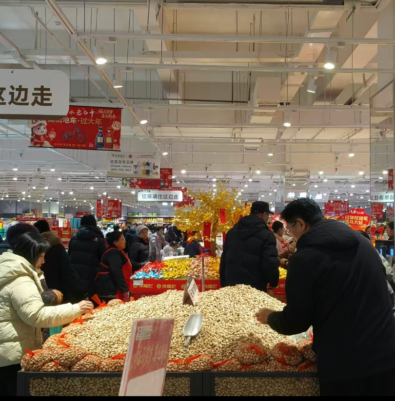 2月8日,记者来到市区中心大街一家大型超市,放眼看去,满目皆是喜庆的“中国红”,火红的灯笼、烫金的福字、各式春联挂件格外显眼,粮油副食、生鲜果蔬、特色礼盒等商品琳琅满目、供应充足。卖场里人声交织,促销员的介绍、顾客的询价、手推车的转动声响成一片,市民们欢欢喜喜购买着心仪的年货。“我们早早启动了春节保供方案,不仅丰富了年货礼盒、糖果零食、酒水饮料等畅销商品的种类,还积极对接本地及周边产地,直采生鲜果蔬,满足大家多样化的采购需求。同时,我们严把质量关口,精准管理库存,实时进行销售检测,确保大家买到新鲜、实惠、安全的年货。”超市相关负责人陈立叶介绍,刚刚过去的这个周末,超市销售量同比增长超过4%。