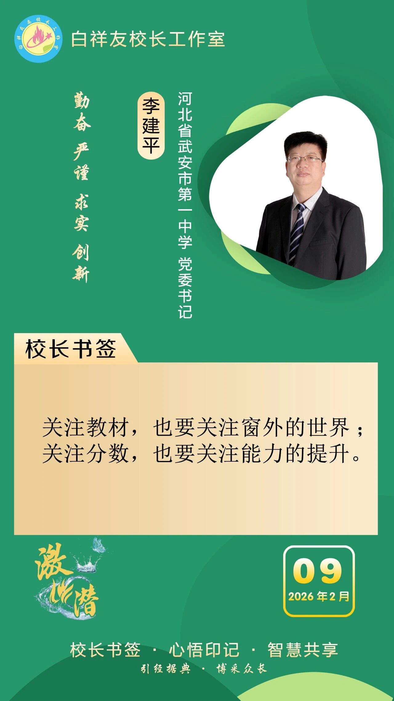 “白祥友校长工作室”成立于2019年4月,是教育部“国培计划”中小学名校长领航工程、河北省首批名校长工作室,目前省内外成员校59所。工作室坚持“资源共享、智慧共融、互助共赢”理念,已成为思想碰撞的交流场,资源共享的品牌站,成果展示的辐射源。 点赞 +1 微博 微信 我要评论 发布 相关推荐 衡水市名校长大讲堂在衡水十三中举办 教育部中小学校长培训办公室于维涛主任作专场报告 教育大观 01-19 白祥友校长工作室成员带队参观衡水十三中 教育大观 2024-05-22 “白祥友校长工作室”成员校石家庄十五中百余教师来衡水十三中参观 教育大观 2024-04-01 热门 一天 三天 一周 1 印度尼西亚姑娘远嫁阜城小伙 八年坚守绘就最美家风 2 衡水市:让养老成为看得见、摸得着的幸福实景 3 衡水市多源蓄水保春灌 4 【新春走基层】深州市辰时镇温家庄村的好日子 5 【新春走基层】笔墨映笑脸 戏韵连邻里——武邑文昌社区春节文艺演出活动见闻 6 中酿九州啤酒独家冠名衡水网红与实体经济融合发展盛典 7 衡水市区1.4万余盏路灯“体检”迎新春 8 【“十五五”开局看衡水】老技艺融合新动能 “小音符”撬动大产业 ——武强县乐器产业奏响升级“奋进曲” 9 邯港高速衡水段开展春运危化品应急演练 10 回眸来时耕耘路 实干笃行谱新篇 ——衡水二中2025年办学成果岁末盘点 1 线上“云”逛集 线下年味浓 衡水文旅市集圆满收官 全市2026年新春文旅盛宴正式启幕 2 把爱带回家 景县开展2026寒假儿童关爱服务活动 3 衡水市非遗文创市集红火开市 市民沉浸式体验非遗文化 4 真人版猫鼠大作战 青春心动“玩”出来 衡水新春青年联谊活动有“趣”又有“爱” 5 【新春走基层】 赶大集 办年货 品年味 衡水市冀州新发地年货大集火热开市 6 写春联做香囊拓福字 安平县各社区纷纷推出“年味套餐” 7 【新春走基层】 光影科技点亮红韵新春——走进安平台城红色景区 8 印度尼西亚姑娘远嫁阜城小伙 八年坚守绘就最美家风 9 衡水市马文化展览精彩亮相 市民沉浸式感受中华马文化 10 策马扬鞭启新程 衡水市五院交出2025医疗民生答卷 1 春节期间衡水推出近200项文旅活动 2 衡水移动:织密通信“保障网” 守护万家“团圆年” 3 戏曲搭台传古韵 服务下乡暖民心 衡水市景县举办“戏曲过大年”文化惠民活动 4 破局与生长 ——2025年十大亮点见证基础教育的衡中力量 5 衡水市首个市属高速公路党群服务驿站挂牌启用 6 剪福字 贴窗花 武邑开展童心敬老活动传承美德 7 全省首笔!工行冀州支行3000万元“购建贷”赋能棉纺产业智能化升级 8 烟火聚大集 年味满武邑 ——衡水市首届供销年货会暨武邑县2026年供销大集见闻 9 故城:大棚香椿抢“鲜”上市 10 烟火入画 乡愁为魂 广告 广告 广告 24小时 1 第1视点|为新就业形态劳动者织密保护网 2 经纬线·在老街区,解锁城市更新的“活力密码” 3 【热气腾腾中国年】习言道|跟着总书记一起品味年俗文化 4 创新高!去年河北一类新药+3,经典名方新获批全国第一 5 新春走基层|小年夜里的“足球盛宴” 6 河北省首票“水水中转”多式联运货物发运 7 河北省研发费用加计扣除政策落实取得新成效 8 白洋淀护鸟人的新春坚守 9 雄安新区:“人工智能+”开拓产业发展新赛道 10 【新春纪事】京雄快线进入综合联调阶段 助力京雄同城化加速度