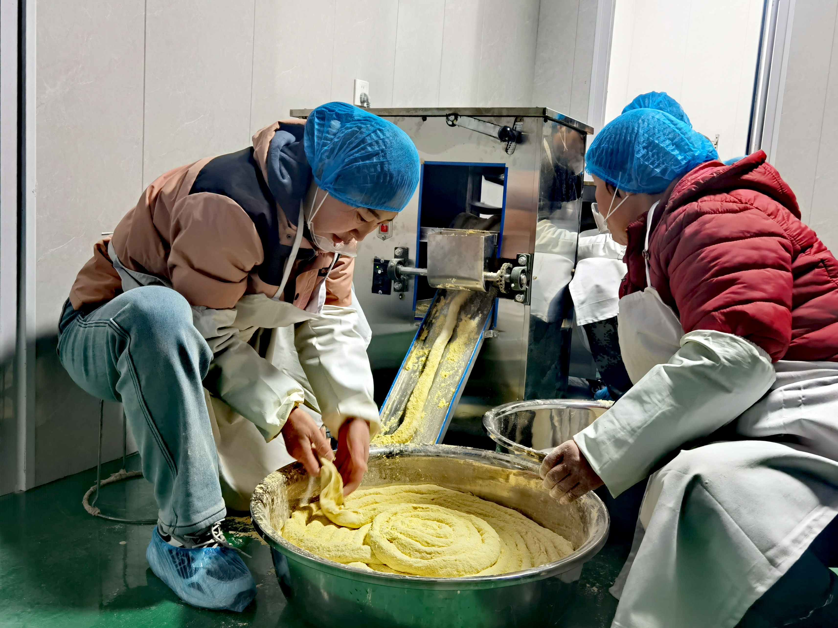 村“两委”经多方考察、反复论证,启动农产品深加工项目,升级改造厂房,同步引进空心挂面、水饺、磨面三条生产线,推动传统农业向高附加值产业转型。