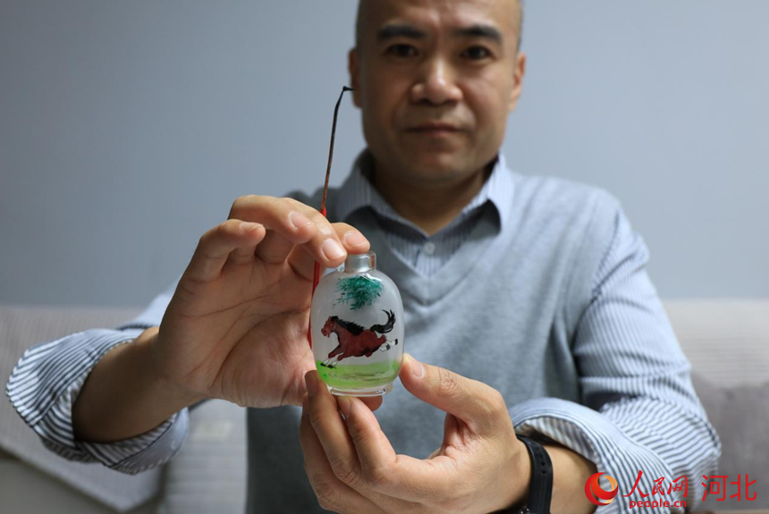 衡水桃城区胡晓然内画工作室胡晓然展示将带去意大利佛罗伦萨国际工艺品博览会的作品。人民网记者 商帆摄