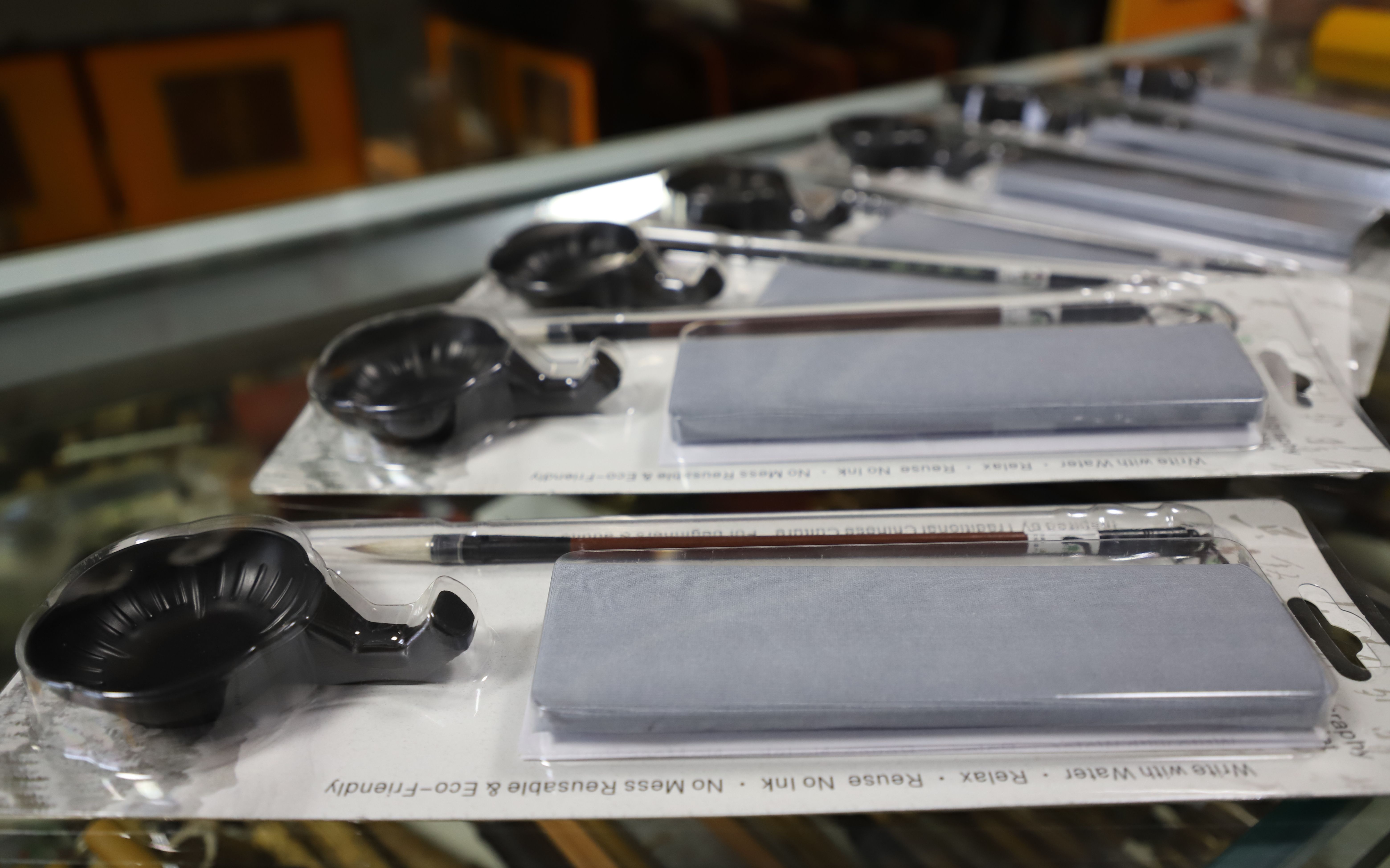 在孙占彪毛笔厂里,3000套量身订做的海外毛笔套装已经完工。孙占彪对这些套装格外满意:“这款毛笔套装,笔杆设计更符合欧洲人的握笔习惯,还附有水写布、水碟和意、英两种语言说明书,让外国人也能轻松体验中国书法!”