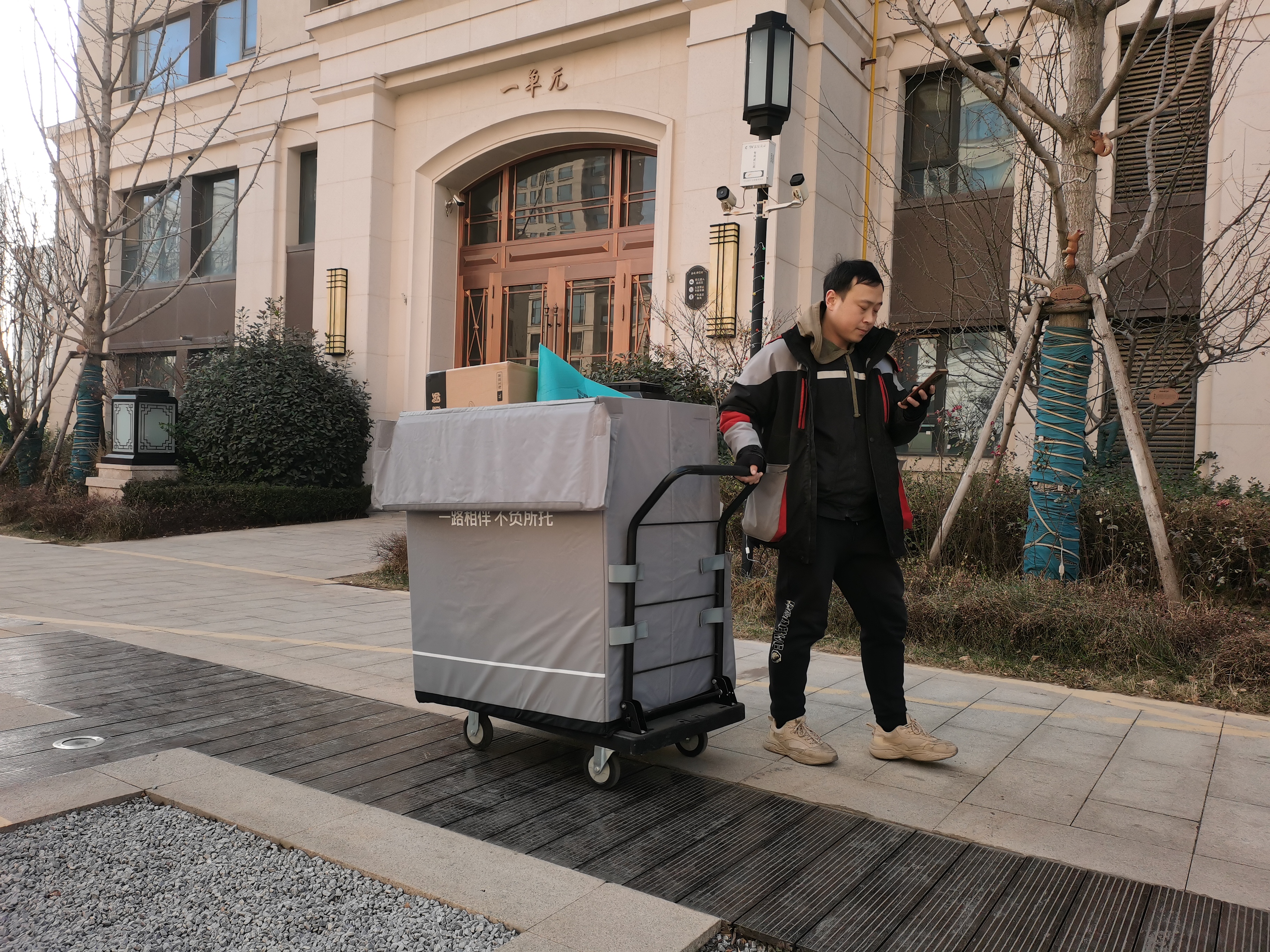 随后抵达的居民小区,三轮车无法进入。26件包裹分散在4栋楼6个单元,代海明拉过公司配备的滑轮配送箱,将包裹装好后挨栋挨单元派送。半个多小时里,他不仅顺利送完包裹,还顺手收了几个居民要寄的年货,脚步始终没停。