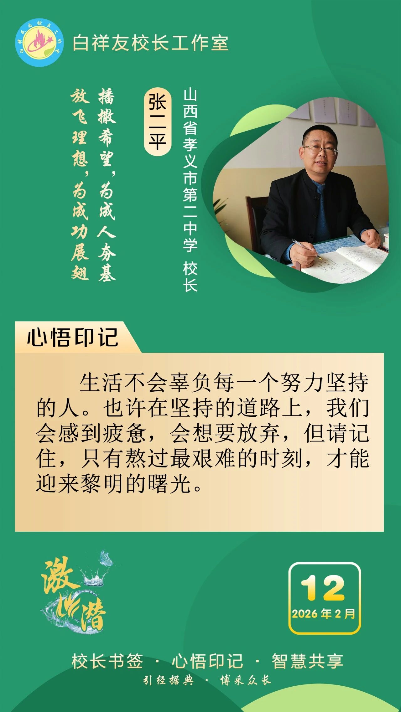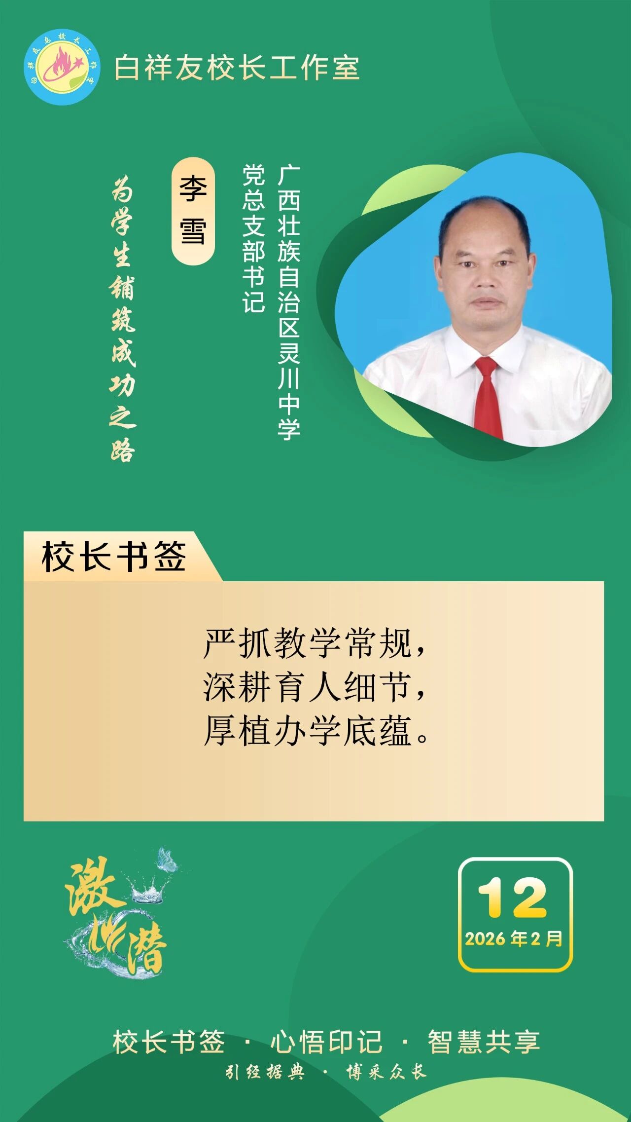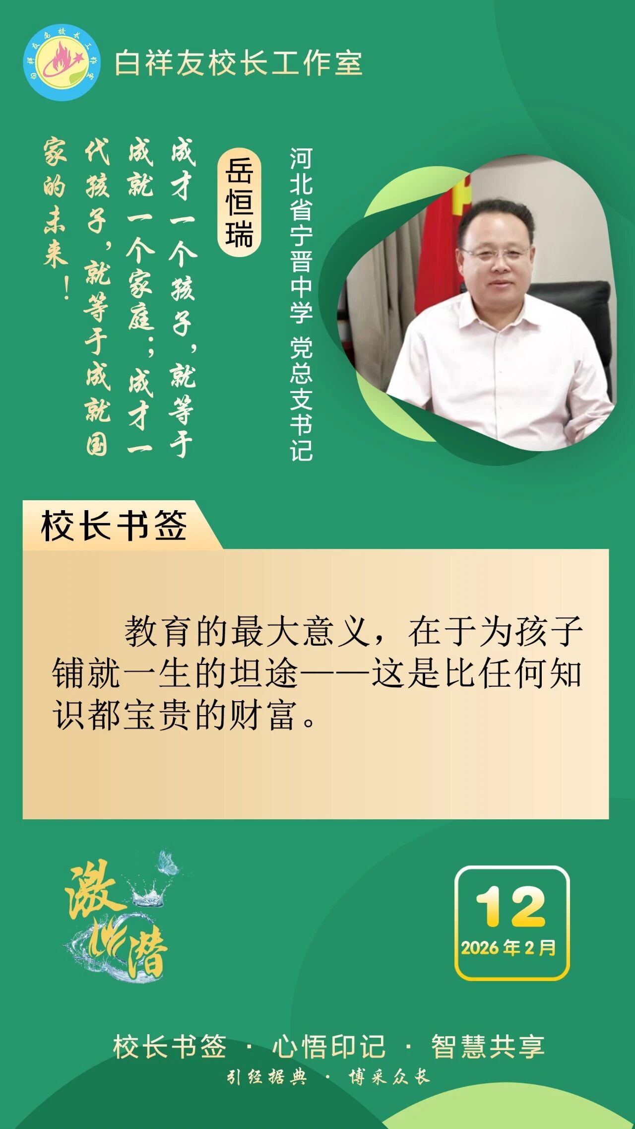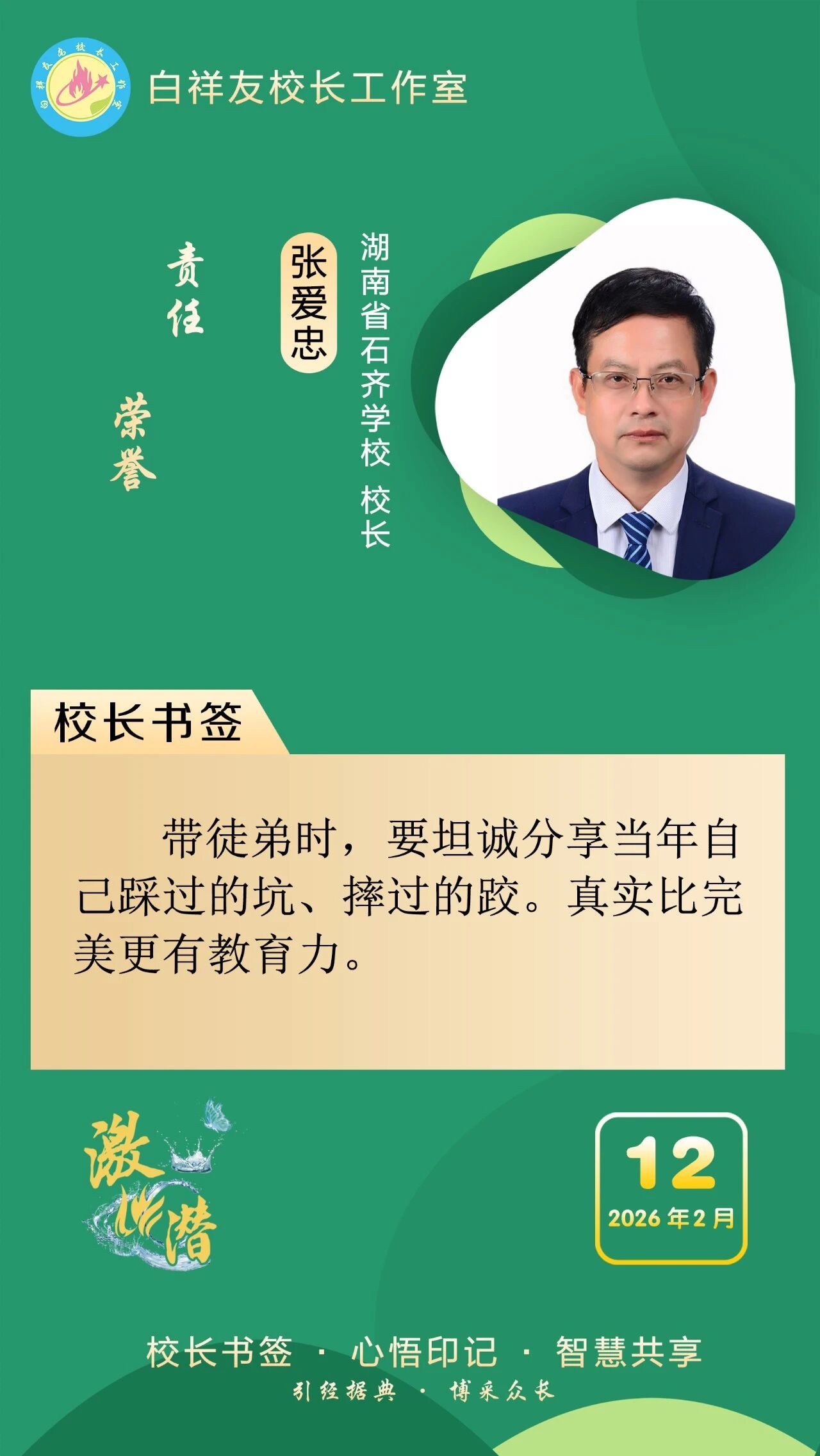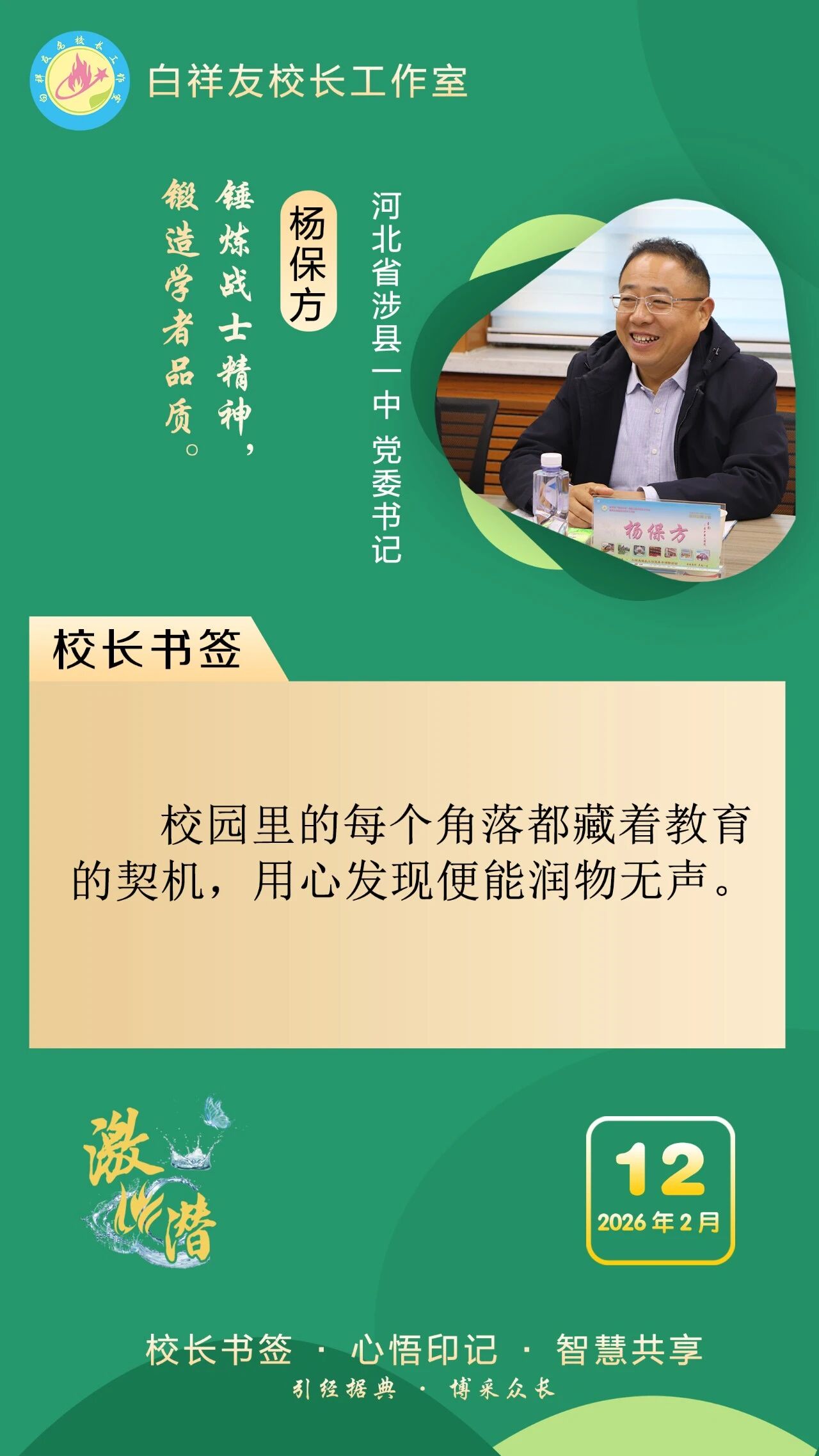 “白祥友校长工作室”成立于2019年4月,是教育部“国培计划”中小学名校长领航工程、河北省首批名校长工作室,目前省内外成员校59所。工作室坚持“资源共享、智慧共融、互助共赢”理念,已成为思想碰撞的交流场,资源共享的品牌站,成果展示的辐射源。 点赞 +1 微博 微信 我要评论 发布 相关推荐 衡水市名校长大讲堂在衡水十三中举办 教育部中小学校长培训办公室于维涛主任作专场报告 教育大观 01-19 白祥友校长工作室成员带队参观衡水十三中 教育大观 2024-05-22 “白祥友校长工作室”成员校石家庄十五中百余教师来衡水十三中参观 教育大观 2024-04-01 热门 一天 三天 一周 1 【新春走基层】“走,跟我回武强!” 2 【新春走基层】国网景县供电公司:以“满格电”护航新春佳节 3 衡水各地走访慰问关爱道德模范等先进典型 4 春节假期 衡水市无明显雨雪天气 气温波动回升 5 【新春走基层】跟着物流进乡村 6 马年新春里的阜城剪纸:老手艺焕新彩 小乡村启新程 7 抱愧衡中 8 【新春走基层】一街烟火 满城年味——春节前夕桃城区庆丰街夜市见闻 9 春联送祝福 墨香暖民心 武邑县开展民俗过大年“万福迎春”活动 10 氛围感拉满 衡水市公交车“迎新春”主题车厢已上线 1 印度尼西亚姑娘远嫁阜城小伙 八年坚守绘就最美家风 2 衡水市:让养老成为看得见、摸得着的幸福实景 3 回眸来时耕耘路 实干笃行谱新篇 ——衡水二中2025年办学成果岁末盘点 4 衡水市多源蓄水保春灌 5 【新春走基层】 贾史庄村大棚里的“云市场” 6 【新春走基层】衡水非遗新春赶工忙“外销” 7 【新春走基层】深州市辰时镇温家庄村的好日子 8 节前敲警钟 清廉过佳节——中华财险衡水中支组织全体员工观看警示教育片 9 【新春走基层】笔墨映笑脸 戏韵连邻里——武邑文昌社区春节文艺演出活动见闻 10 中酿九州啤酒独家冠名衡水网红与实体经济融合发展盛典 1 烟火聚大集 年味满武邑 ——衡水市首届供销年货会暨武邑县2026年供销大集见闻 2 新年将至花香浓 衡水市民花卉市场寻春意 3 衡水市桃城区幸福里社区:笔墨传福暖民心 社企联动贺新春 4 河北衡水:“红火过大年”文旅消费市集热闹开市 5 蛋壳雕骏马 非遗贺新春 ——衡水蛋雕传承人霍广健推出马年主题新作 6 河北衡水:河沿大集年味浓 市民赶集备年货 7 白祥友名校长工作室 | 激潜教育探索随笔(第757期) 8 【新春走基层】一根0.012毫米微丝的“智造”新生——安平县鑫河金属丝网有限公司见闻 9 向美而行 乡村蝶变 ——衡水市绘就和美乡村新画卷 10 “河北五超”衡水赛区第二十六轮完赛 广告 广告 广告 24小时 1 【新春走基层】企业有“动”“静” 园区“筑巢”忙 2 海报系列||早安衡水 3 衡水华厦同瑞眼科成功开展EVO+ICL(V5)晶体植入手术 4 氛围感拉满 衡水市公交车“迎新春”主题车厢已上线 5 独家视频丨习近平向全国各族人民 向港澳台同胞和海外侨胞拜年 6 独家视频丨习近平:在中国式现代化新征程上策马扬鞭 勇往直前 共同开创更加美好的未来 7 近镜头|一餐一饭系心间 8 习言道|中国共产党领导的多党合作和政治协商制度,是中国共产党、中国人民和各民主党派的伟大政治创造 9 和总书记面对面|把老字号传承发展好 10 【新春走基层】一街烟火 满城年味——春节前夕桃城区庆丰街夜市见闻