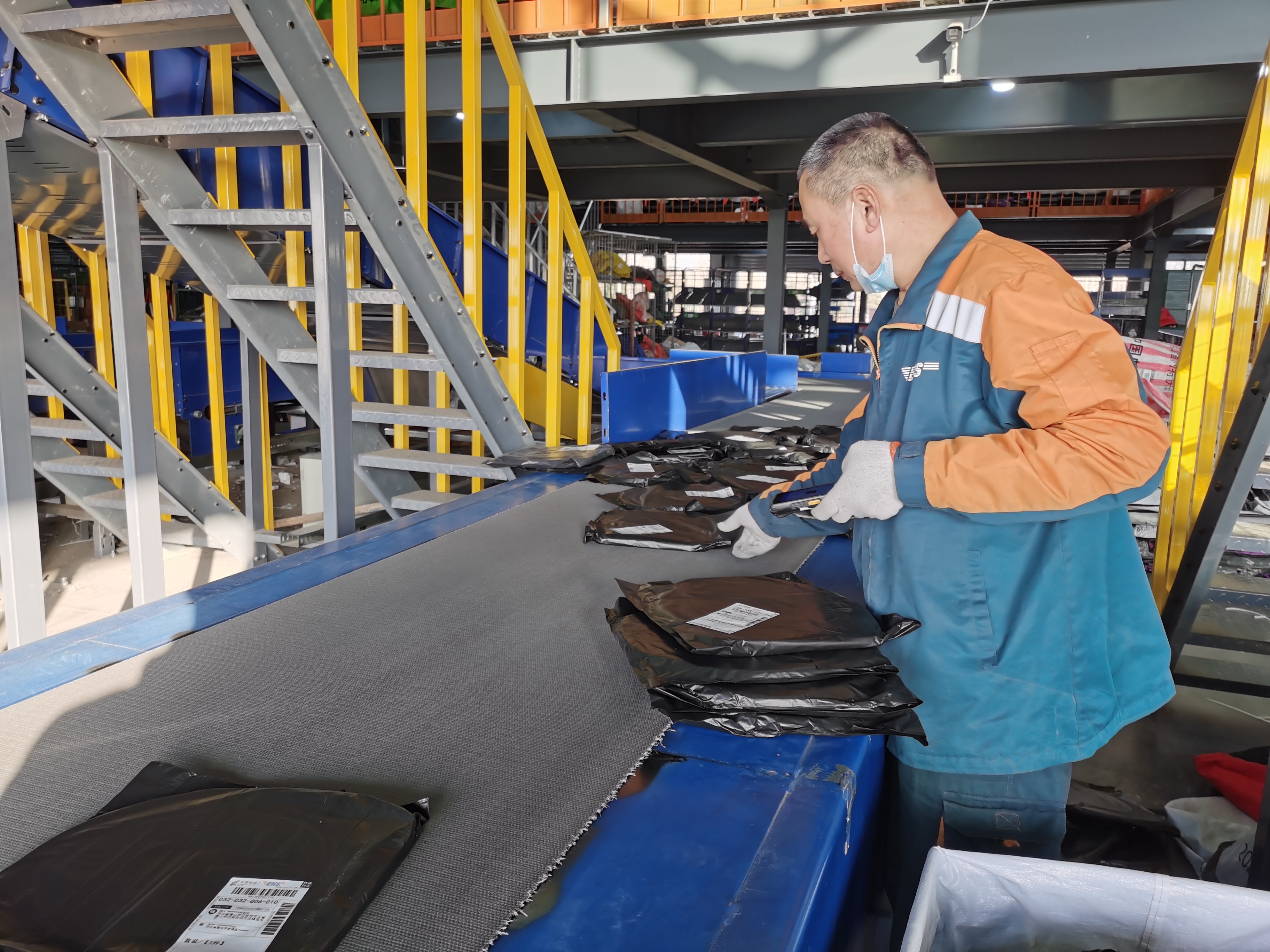身着各色工服的操作员守候在各自节点,眼神专注,动作麻利。他们或俯身扫描模糊的条码,或迅速将异形件拨入正确轨道,或将从机器“溢”出的包裹精准投入对应格口。扫描成功的“嘀”声连成一片急促的电子乐,包裹坠入代表不同目的地的帆布袋时,发出低沉的“噗噗”闷响。