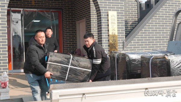 汇名轩年画非遗工坊的工人将打包好的年画装车。长城网·冀云客户端记者 李雄飞 熊庆