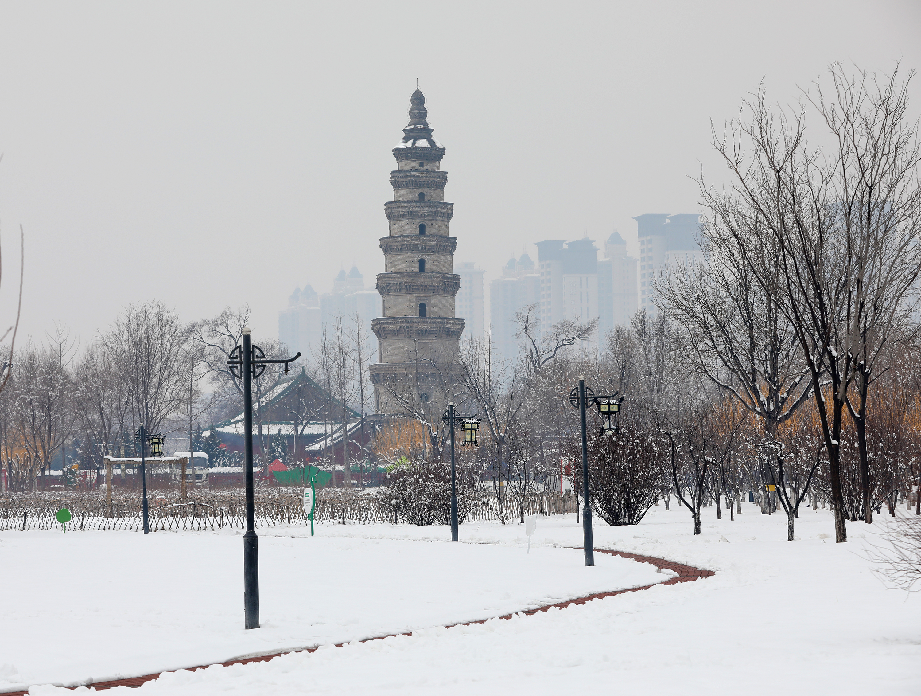 昨日,衡水市迎来立春后首场降雪,宝云公园银装素裹,尽显北国冬日的独特韵味。