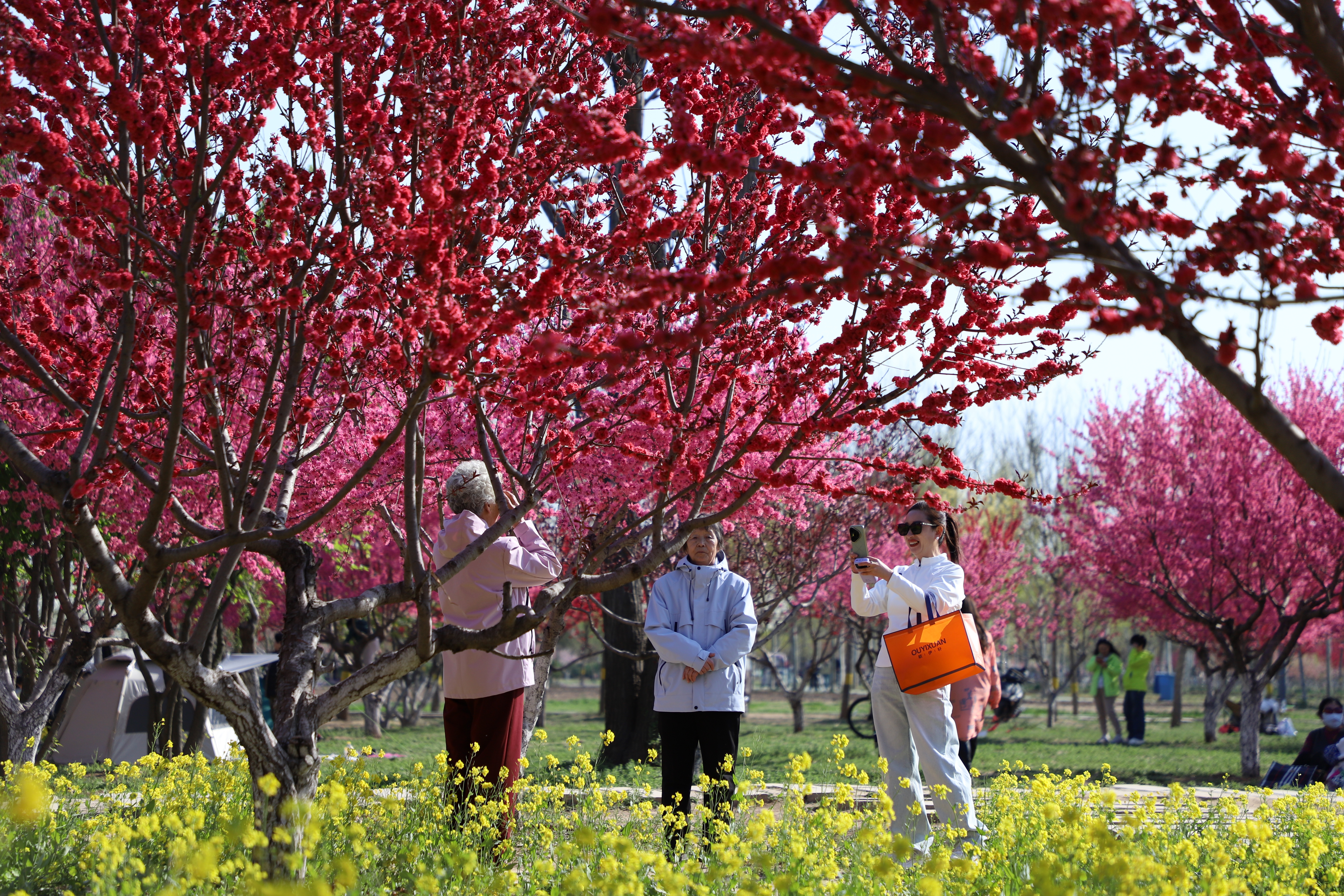 雪后初霁,宝云塔被白雪覆盖,挺拔的塔身在雪雾映衬下更显庄重,与远处的城市楼宇构成一幅独具韵味的冬日图景。枝头积雪蓬松,麻雀在雪枝间穿梭嬉戏,为静谧的园区增添了生机;雪地间,迎春花缀满枝头,嫩黄的花朵与白雪相映,成为冬日里亮眼的风景。
