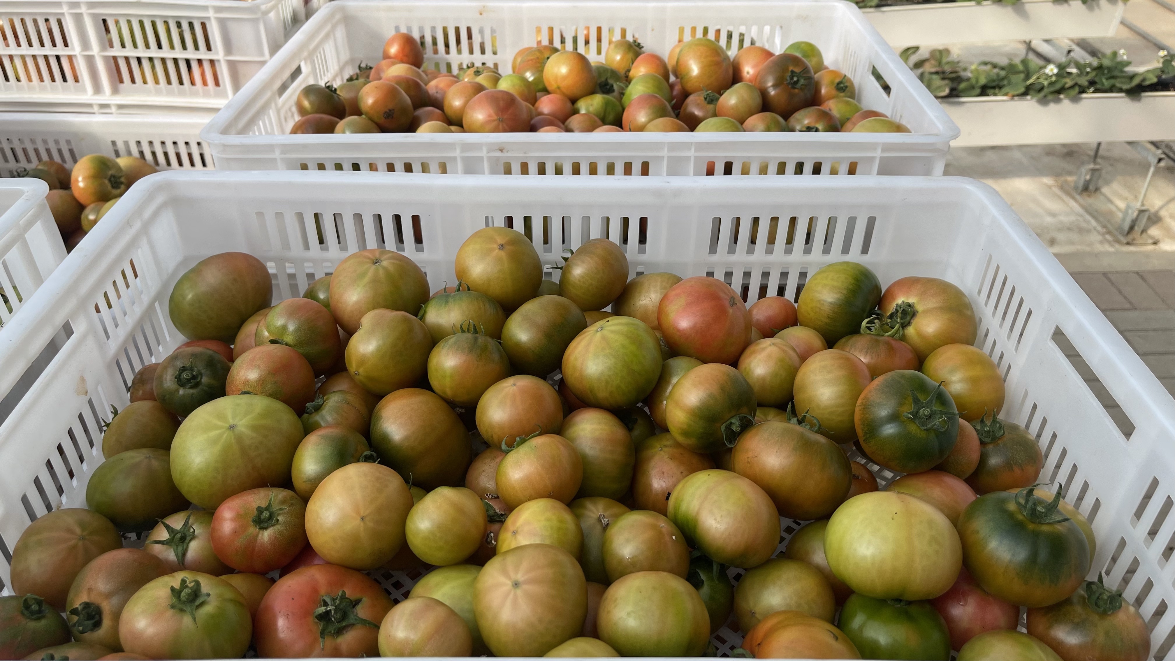 “依托科芯自主研发的‘AIPA’智慧决策型精准农业系统,温室内的通风、补光、调温、灌溉等环节皆可自动判断并执行。”温博介绍,目前番茄生长过程中仅打杈、下盘、采摘等环节需要人工辅助操作,“农场现有26个大棚,日常管护人员不足10人,平均一人可轻松管理2至3个大棚。”