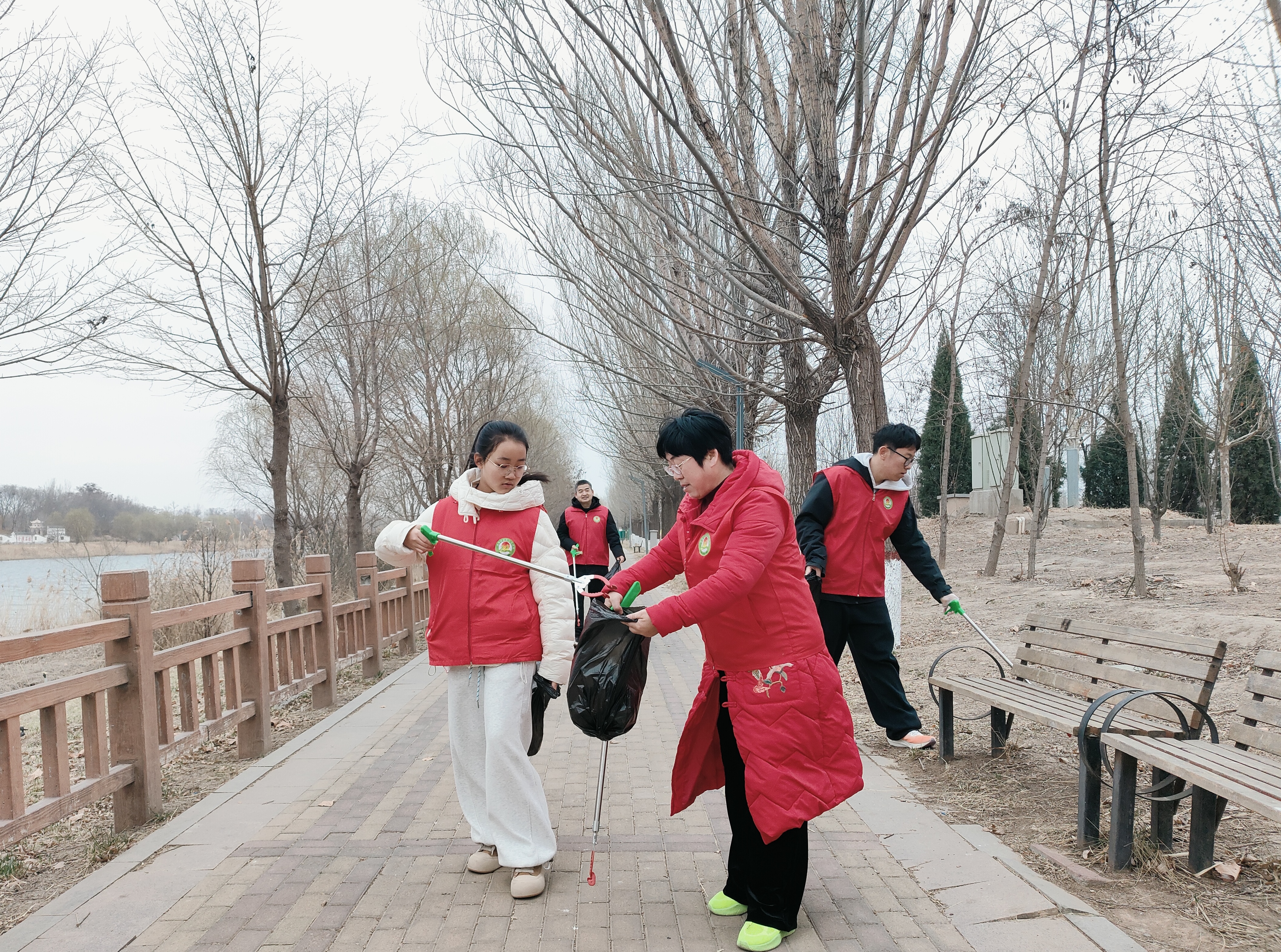活动当天,志愿者和孩子们精神抖擞、热情满满。大家手持垃圾夹、垃圾袋、扫帚等工具,分工协作、默契配合,对公园、广场的绿化带、人行道、休闲区域进行全面清理。大家弯腰俯身,仔细捡拾散落的纸屑、塑料袋、烟头等生活垃圾,不放过任何一处卫生死角。针对路边、角落残留的积雪,志愿者们带领孩子们认真清扫,消除安全隐患,保障市民出行安全畅通。“孩子和志愿者们干劲十足,不怕脏也不怕累,每个人都用汗水为家园环境增添了一抹洁净。”领队人陈爱景笑着说。