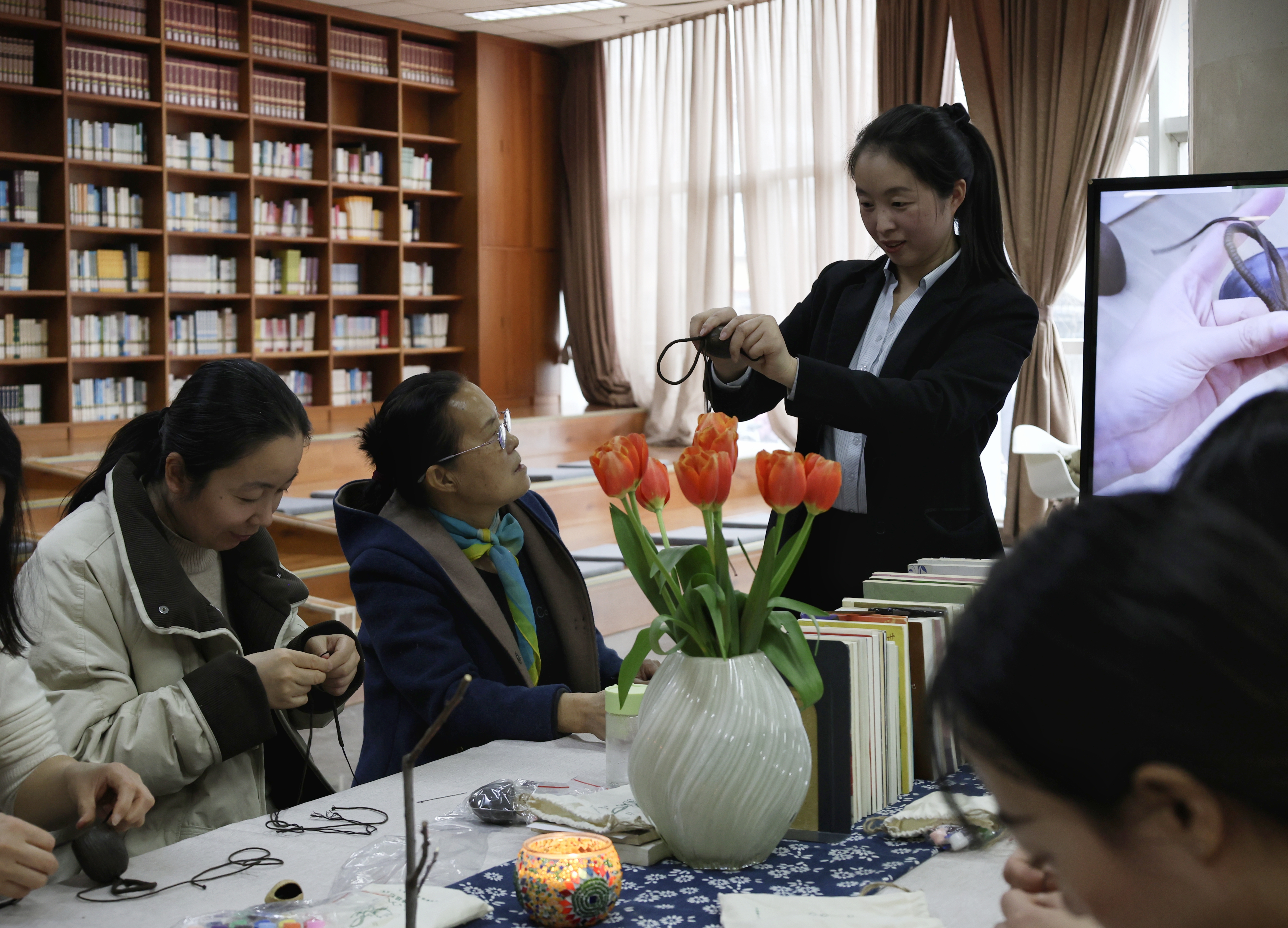 3月7日,市图书馆将“文化超市”搬进桃城区河东街道办桥东社区,开展“书香润巾帼·阅读绽芳华”进社区活动,吸引辖区15组亲子家庭踊跃参与。现场布设女性成长、养生育儿、职场提升等多元图书150册,提供专业借阅咨询。在巾帼读书分享会上,居民代表分享佳作、交流心得,共沐书香。活动还开设养生小课堂与香囊DIY手工课,参与者动手制作香囊、拍照留念,在趣味实践中感受节日氛围。
