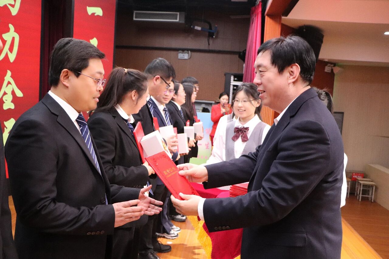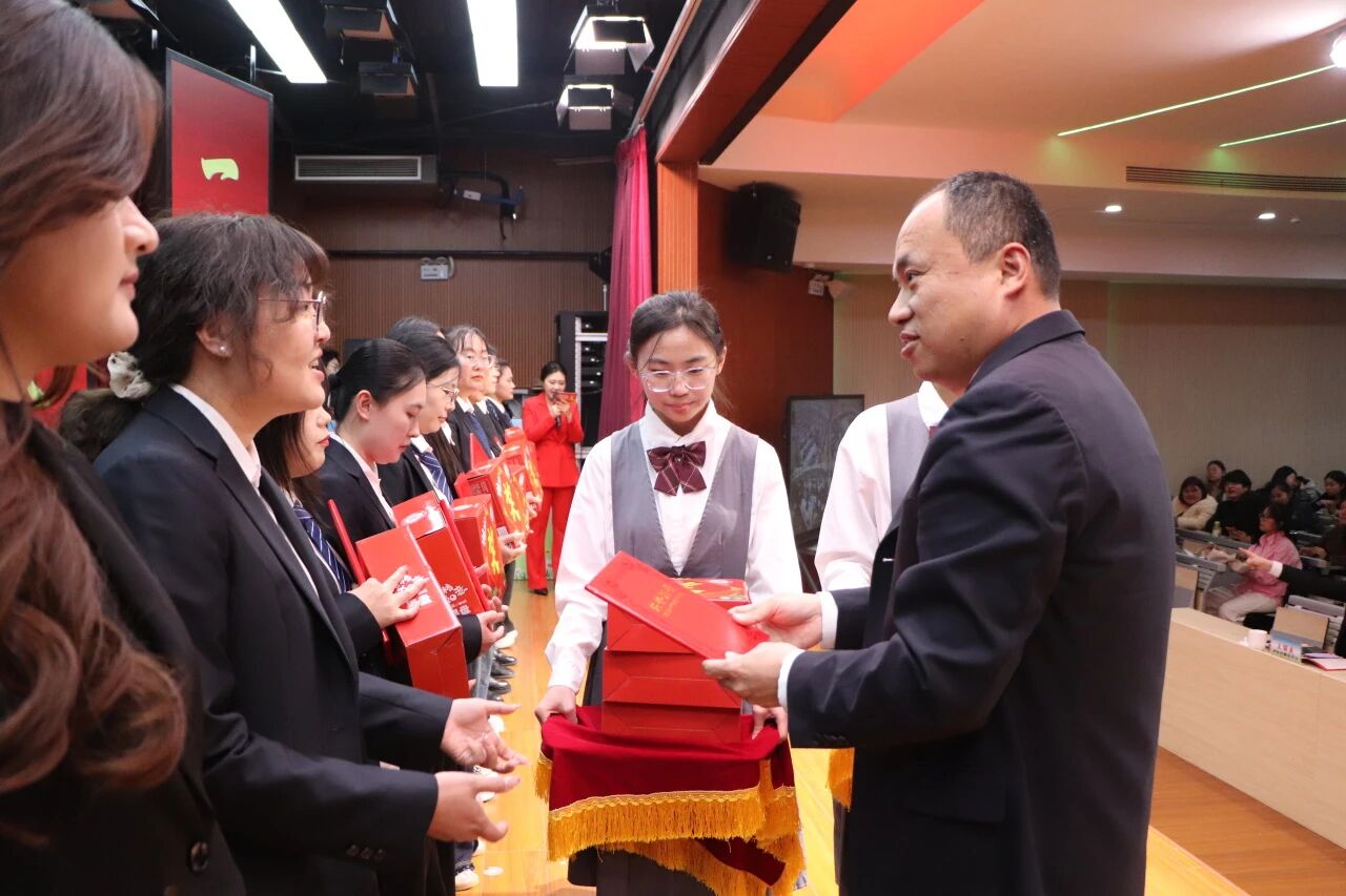 学校对过去一年中涌现出的先进个人进行表彰,奖项设置包括杏坛新秀奖、师德标兵、至美清廉奖、处室先进工作者、杏坛伉俪奖等十余个奖项。伴随着热烈的掌声,获奖教师们上台领奖,他们的辛勤付出和卓越成就赢得了全体同仁的崇高敬意。幸运大抽奖环节惊喜登场,让现场氛围持续升温。