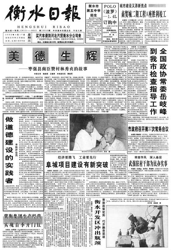 2006年,一则消息传遍衡水大地:林秀贞被评为首届全国道德模范。她30年如一日,像亲生女儿一样照料赡养村里的6位孤寡老人;创办企业,安置农民及残疾职工20名;自掏腰包,资助14名贫困家庭子女步入大中专院校。