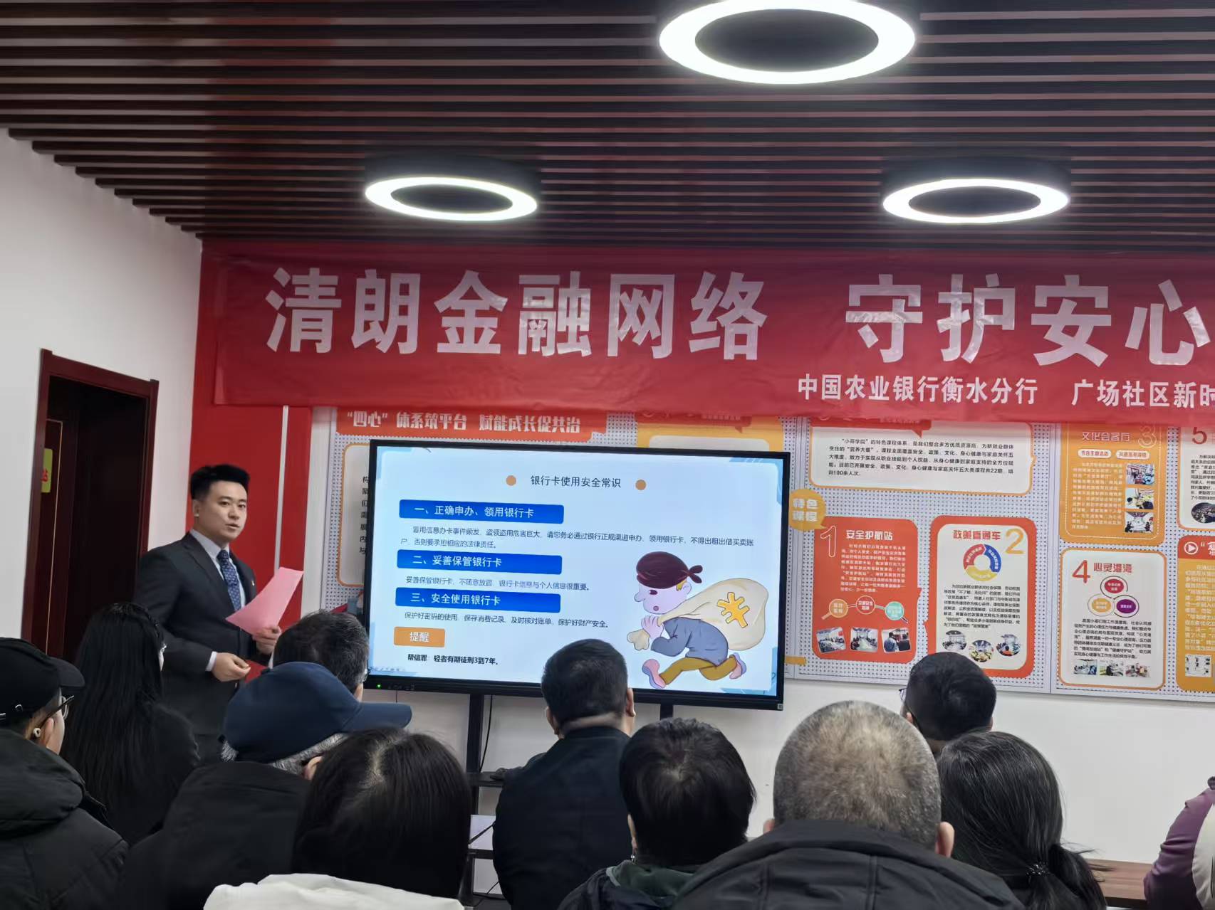 签约仪式后,第一个共建项目——“金融安全小课堂”随即开讲。中国农行衡水西城支行戴金晟用通俗易懂的语言,结合银行卡使用安全常识视频,为居民讲解防非反诈知识。“谁记得刚才视频里提到了哪几项银行卡注意事项?”互动竞答环节,居民们踊跃举手,“密码不能写到银行卡背面”“不能把银行卡借给别人”……答对的居民喜滋滋地领到小礼品,气氛愈发热烈。