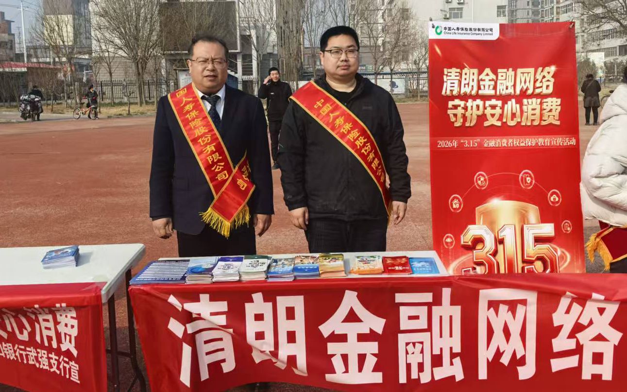 近日,中国人寿武强支公司在武强县体育场参加“清朗金融网络 守护安心消费”金融宣传活动。