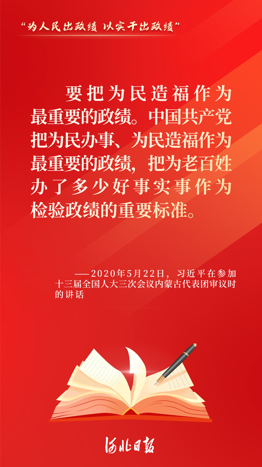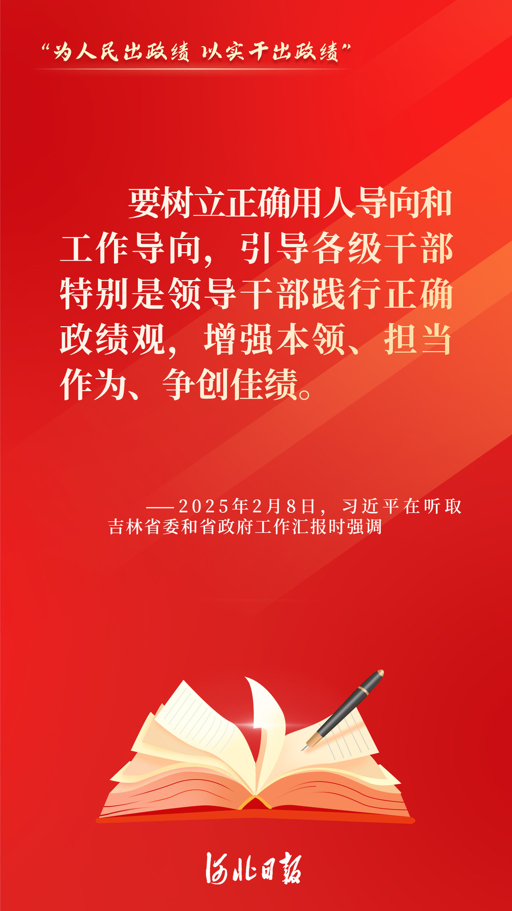 来源:河北日报客户端原标题:金句海报丨“为人民出政绩、以实干出政绩”