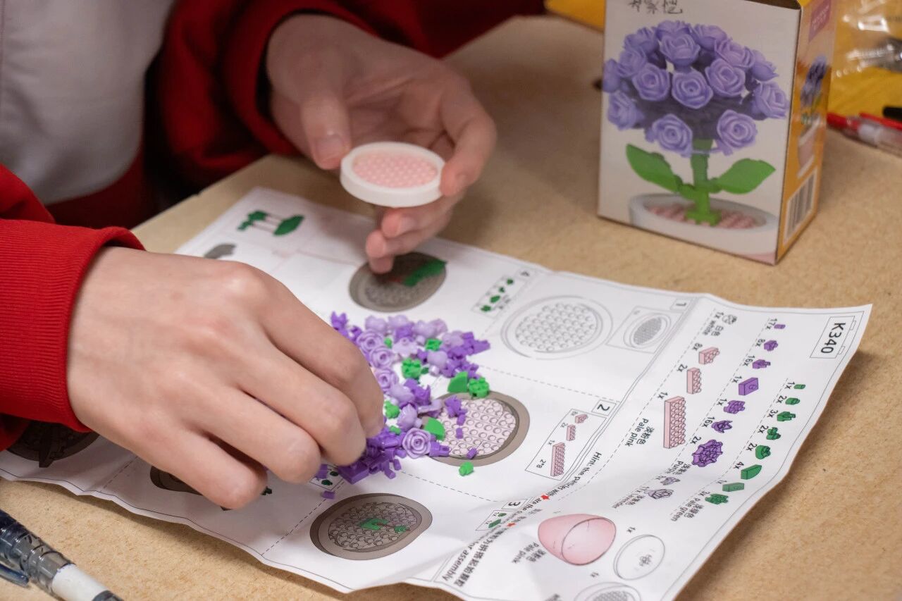 大家将零散的积木拼凑成一朵朵绽放的小花