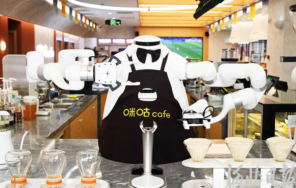 3月18日,雄安新区商务服务中心咖啡店,机器人在为顾客服务。