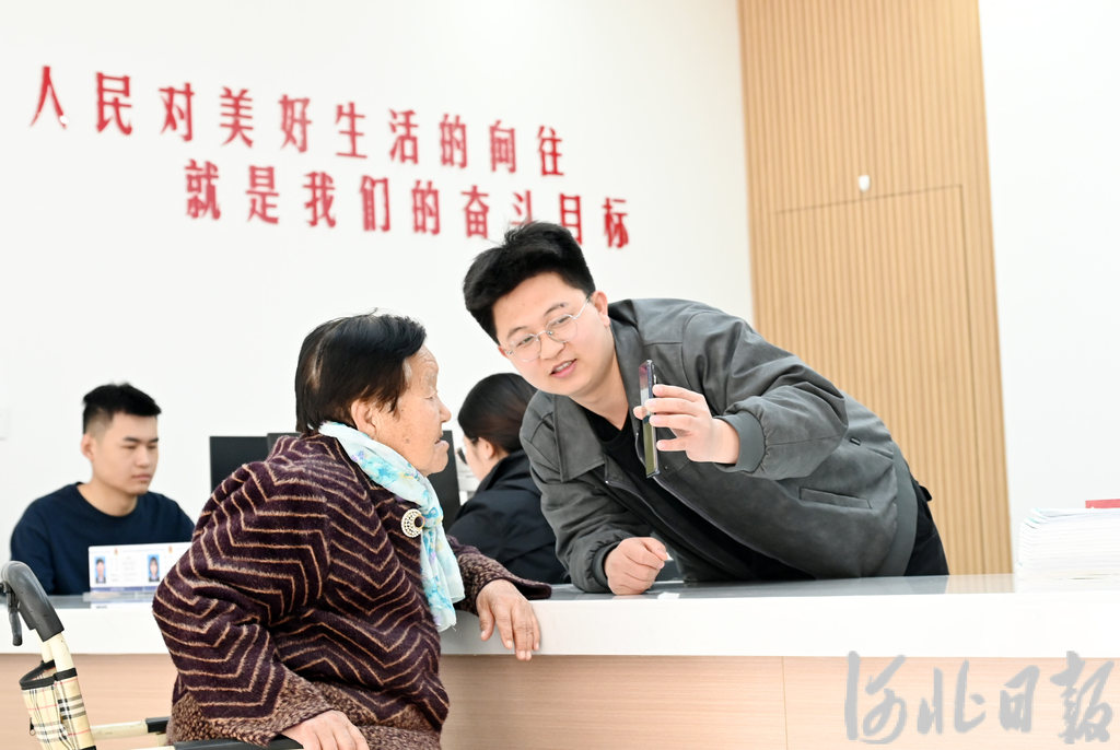 3月26日,雄安新区容东片区南文营社区,工作人员为居民进行认证服务。河北日报记者刘光昱摄
