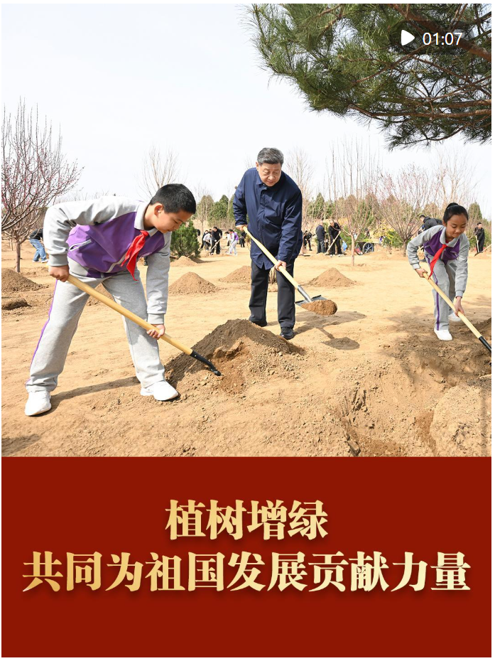 3月30日上午,习近平总书记在参加首都义务植树活动时强调,良好生态人人共享,也需要合力共建。要组织动员全社会广泛参与植树造林,为山川大地增添锦绣,让中国式现代化的底色更加亮丽。