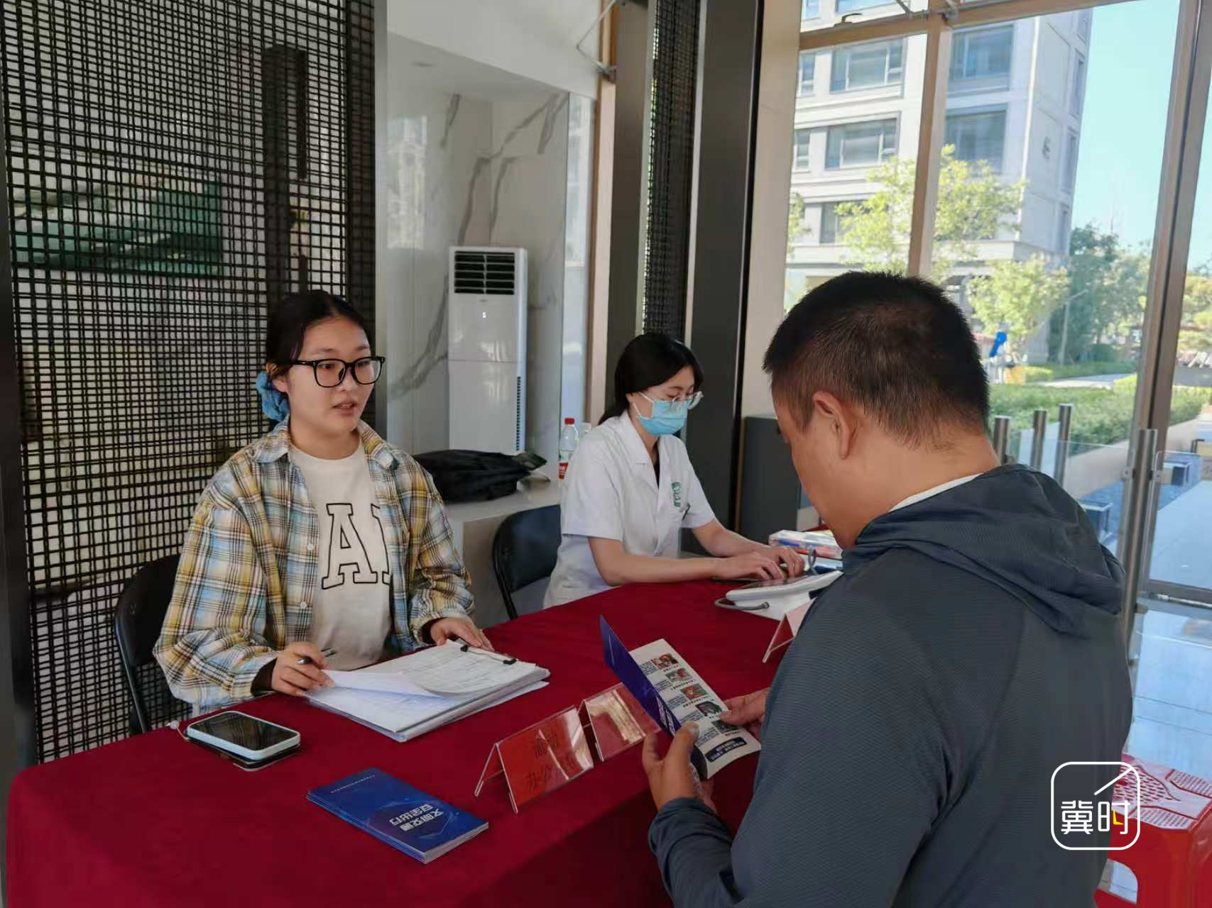 从图书室出来,记者来到社区党群服务中心。这里,雄安气象人工智能创新研究院副研究员柯华兵正在服务窗口前咨询。