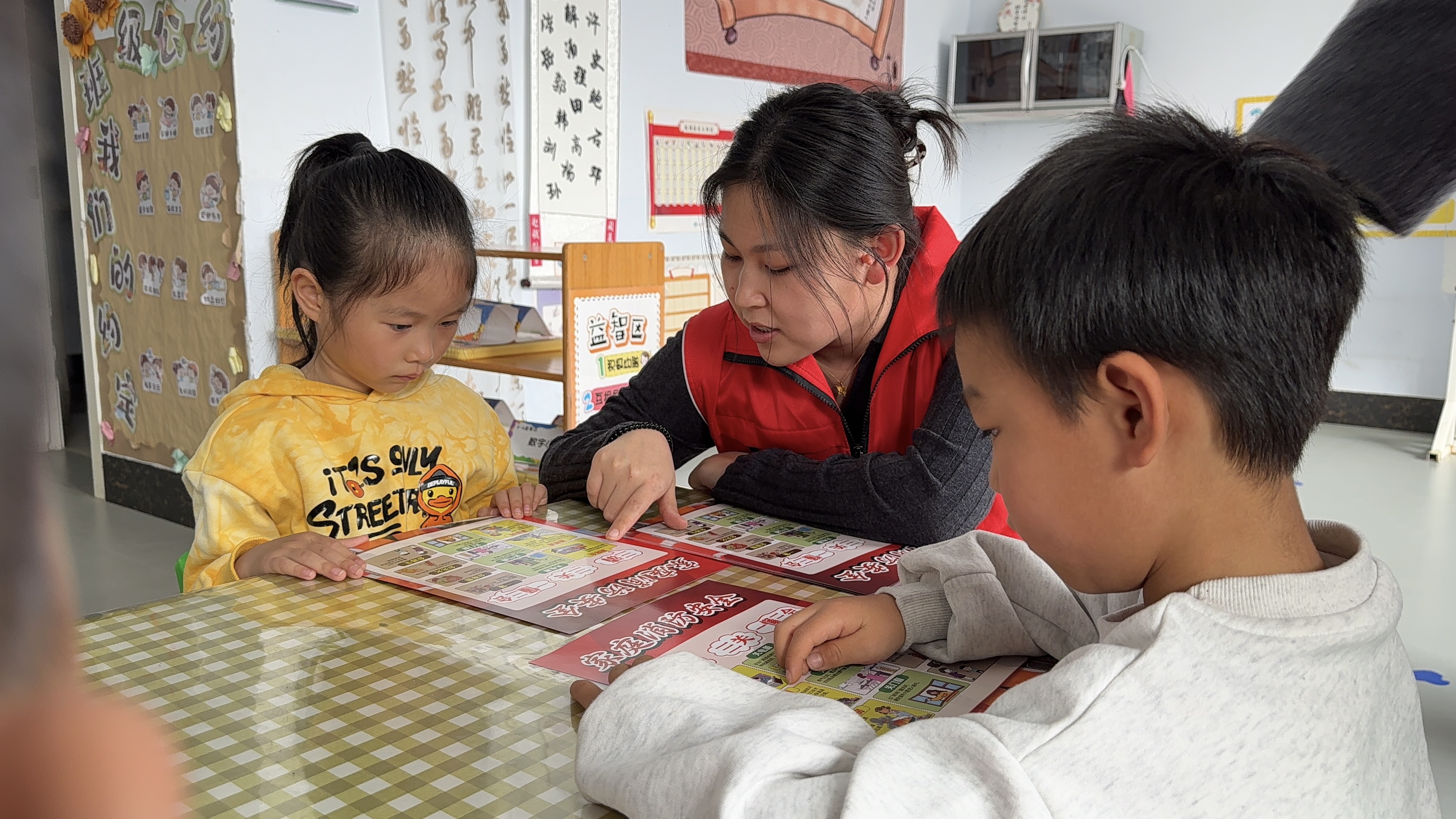 活动现场,消防宣讲员为每一位小朋友发放了图文并茂的消防安全主题宣传页,结合宣传页上的卡通插画与简易安全口诀,围绕“火灾的危害有哪些”“发现火情如何正确拨打119报警电话”“火场逃生要注意什么”“日常不能随意触碰哪些火源电器”等核心内容,引导孩子们主动思考、积极发言,在一问一答中把消防安全知识深植在孩子们心中。