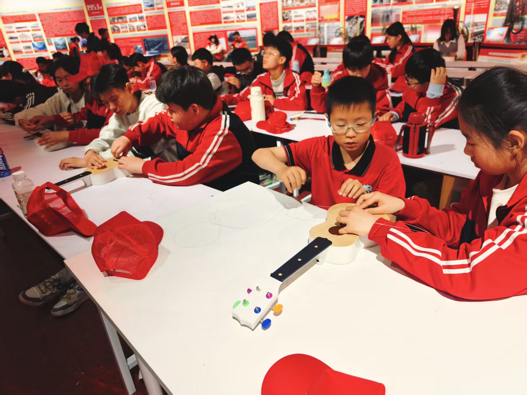 在DIY制作课程中,同学们化身为小小制琴师,从认识木材、组装零件,到打磨调音、装饰彩绘,全程亲自动手参与,完整地体验了小提琴、尤克里里的制作过程。在趣味互动中,孩子们深入了解了乐器构造与乐理知识,亲手制作出属于自己的乐器,并进行了现场弹奏体验。创作与音乐的碰撞,不仅锻炼了孩子们的动手能力和创造力,更让他们收获了独一无二的音乐成就感。