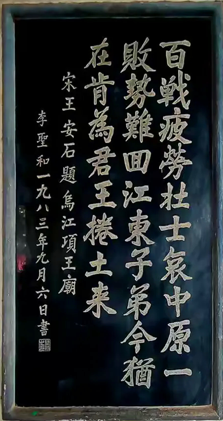 进入祠内,迎面便是享殿。享殿门前高大的香炉上篆刻的“拔山盖世”四个大字,顿时让人心中平添几分敬重。享殿正中是一尊霸王立像,两侧是历朝历代关于项羽的诗咏。毫无疑问,最为世人所熟悉的,是杜牧的《题乌江亭》:“胜败兵家事不期,包羞忍耻是男儿。江东子弟多才俊,卷土重来未可知。”