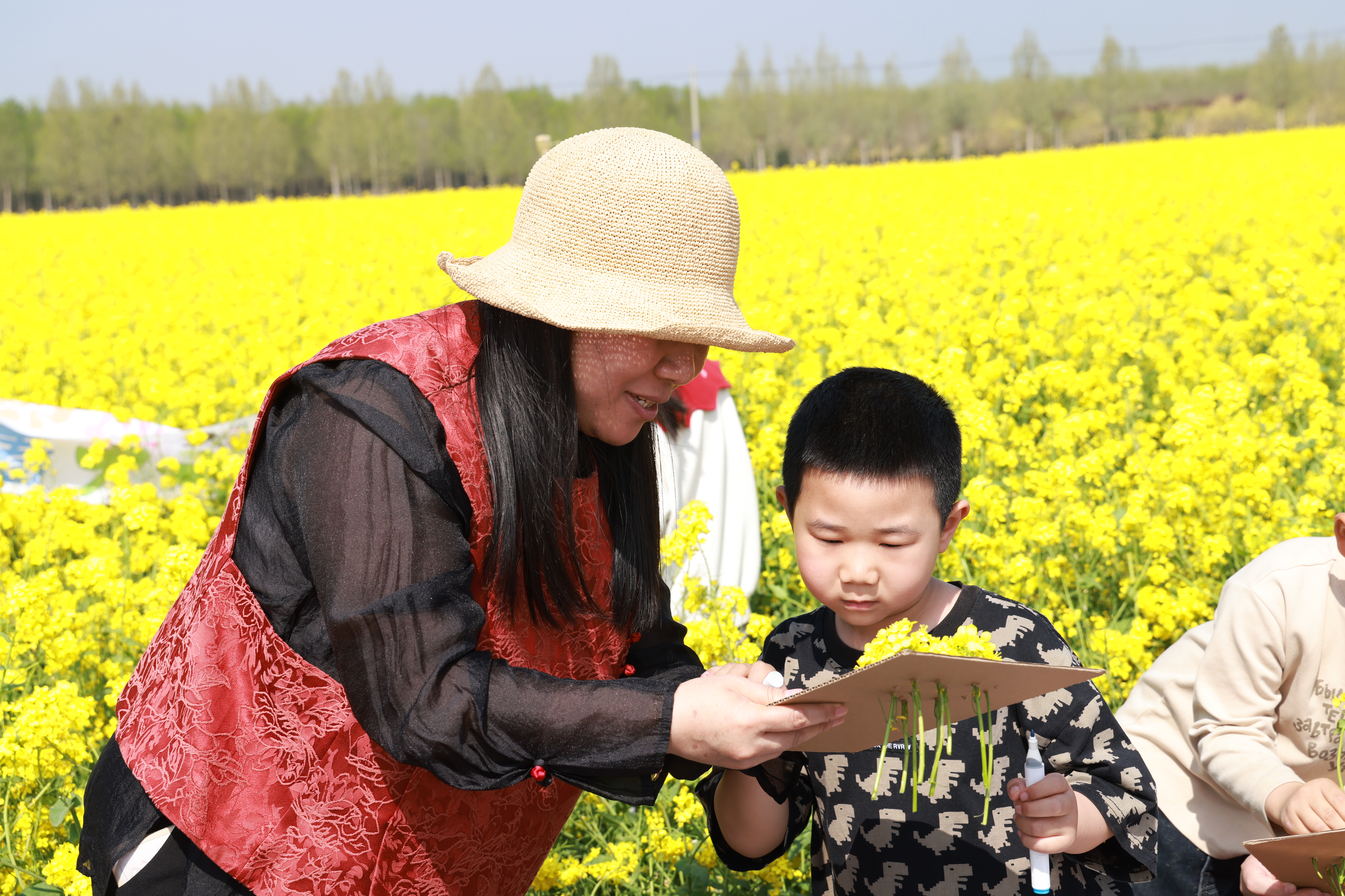 活动还融入多元体验,“绘本漂流”区,孩子们用闲置绘本兑换油菜花干花、创意书签;自然课堂上,村干部讲解油菜花的生长周期,孩子们边观察边写生;创意手工区,亲子合作制作油菜花书签,定格春日记忆。