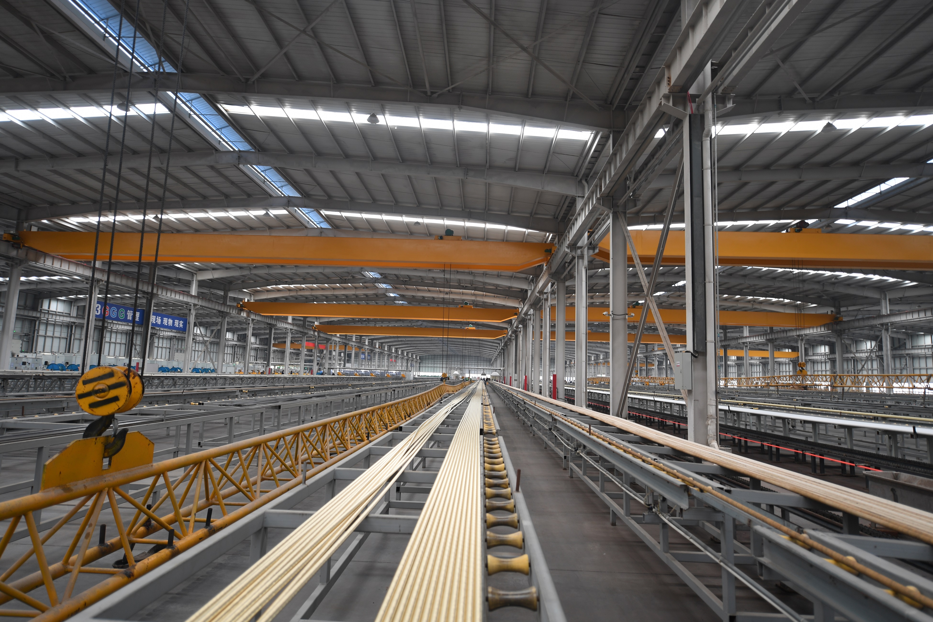 景县卓凡液压科技有限公司的120米超长高压胶管自动化生产线。高雷 摄