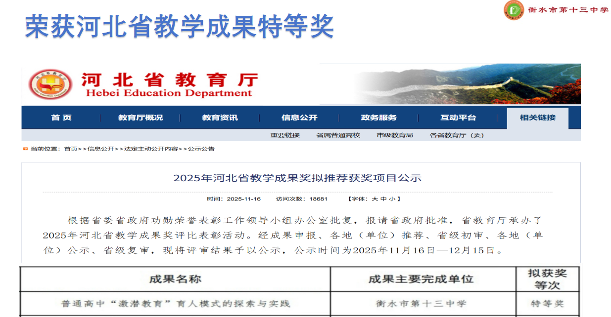 “真研究”——《普通高中激潜教育的十年理论与实践》获河北省教学成果特等奖,省级重点资助课题顺利开题;