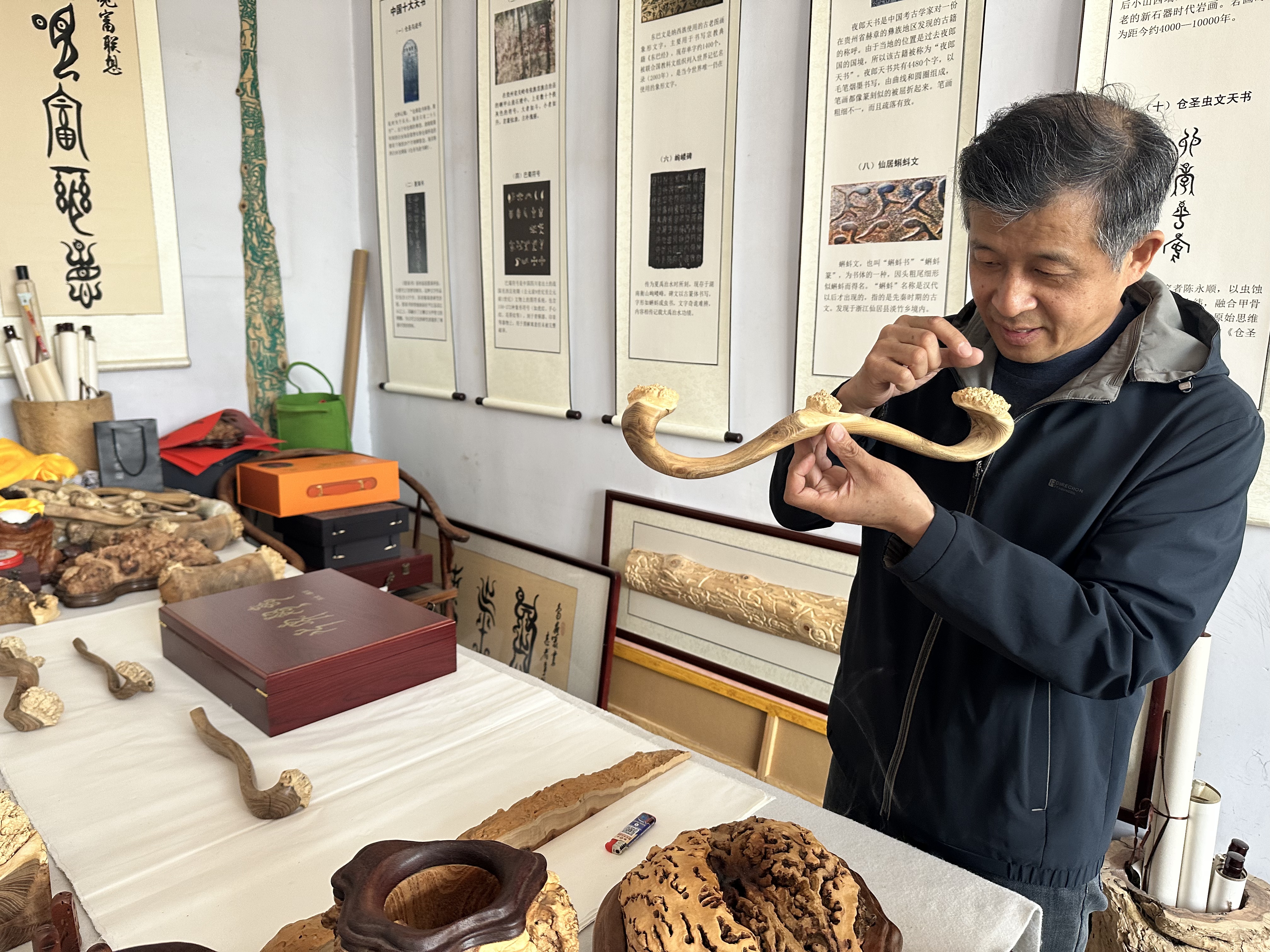 这般残缺与“呼吸”的转化,让陈永顺不禁追问:这些虫痕究竟从何而来?又为何与古老的文字如此神似?他查阅大量古籍后发现,这些天然“虫文”竟是中国文字的另类缘起。“虫文”亦称“鸟虫书”或“鸟虫篆”,古文字学界公认其诞生于春秋末期。至秦代,“鸟虫书”被统称为“虫书”,位列秦书八体之一。宋代文人更以“如虫蚀木、自成文理”来表达自然天成的审美追求;而虫蚀工艺品,如各类文房用具,最早可追溯至明清时期,有着悠久的历史底蕴。
