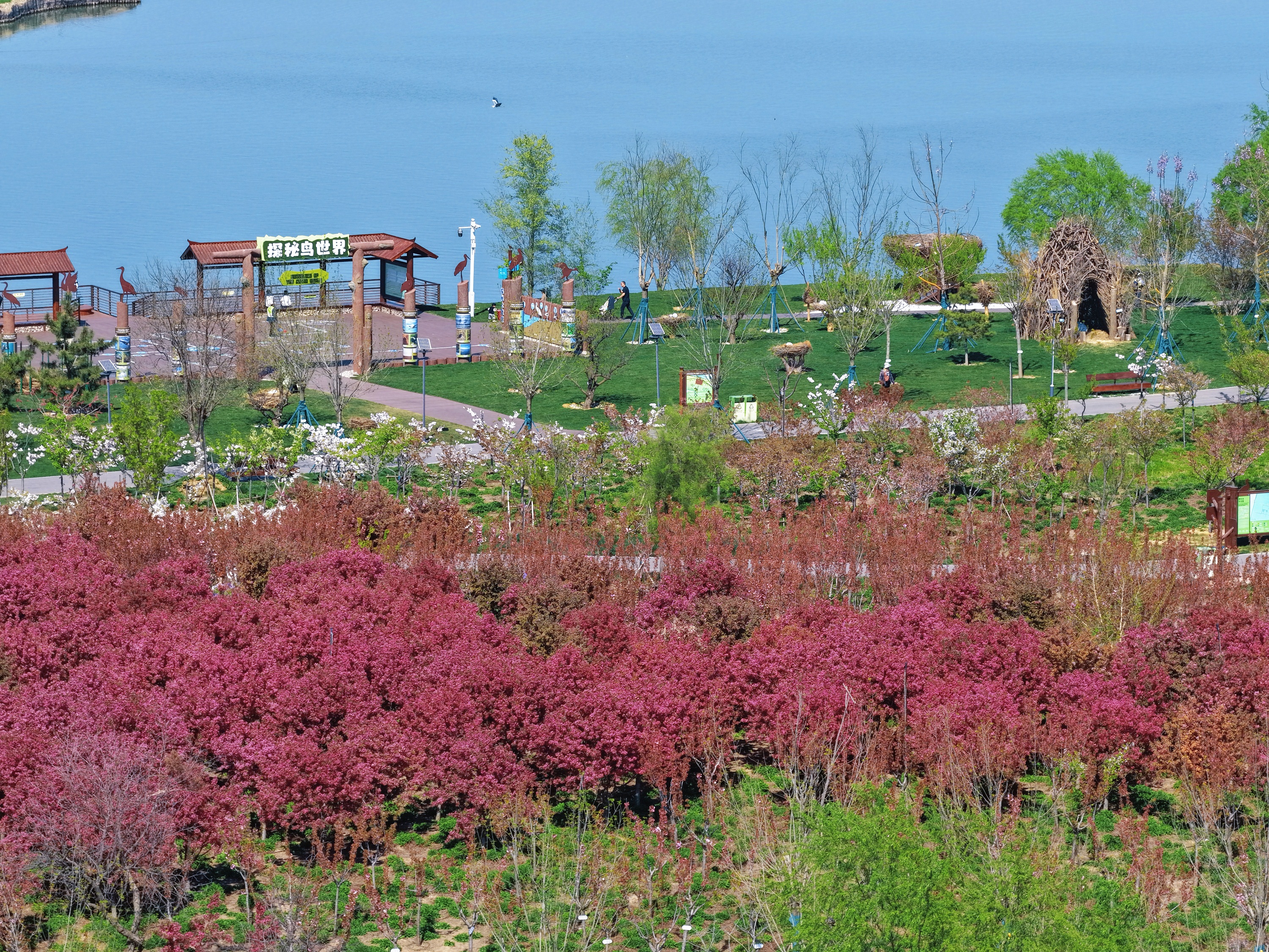 “迁徙有信·文脉有声——衡水湖生态摄影展”在衡湖湾码头入口区域展出。本次摄影展征集了大量反映衡水湖生态之美、水域之韵、人文之暖的优秀作品,经过专业评委评选,选出各类获奖作品进行展出。透过摄影师的镜头,游客可以感受到衡水湖湿地的独特魅力和春日樱韵的浪漫氛围。