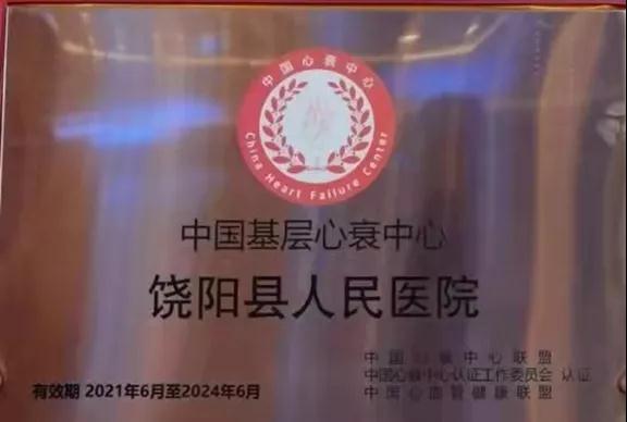 饶阳县医院荣获2021年度全国心衰中心“质控达标之星”称号