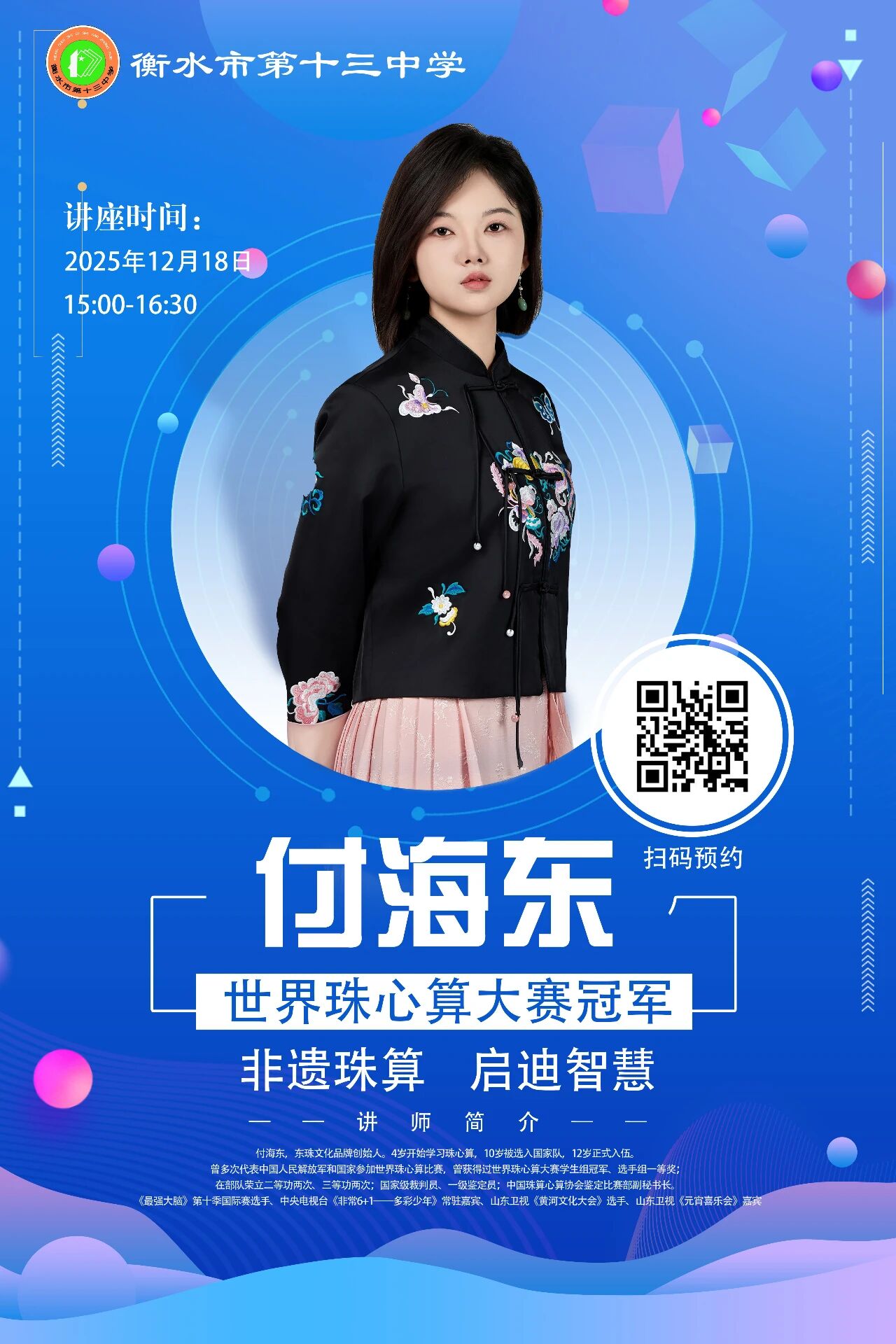 珠心算世界冠军付海东衡水十三中专场讲座报名启动,名额速抢!