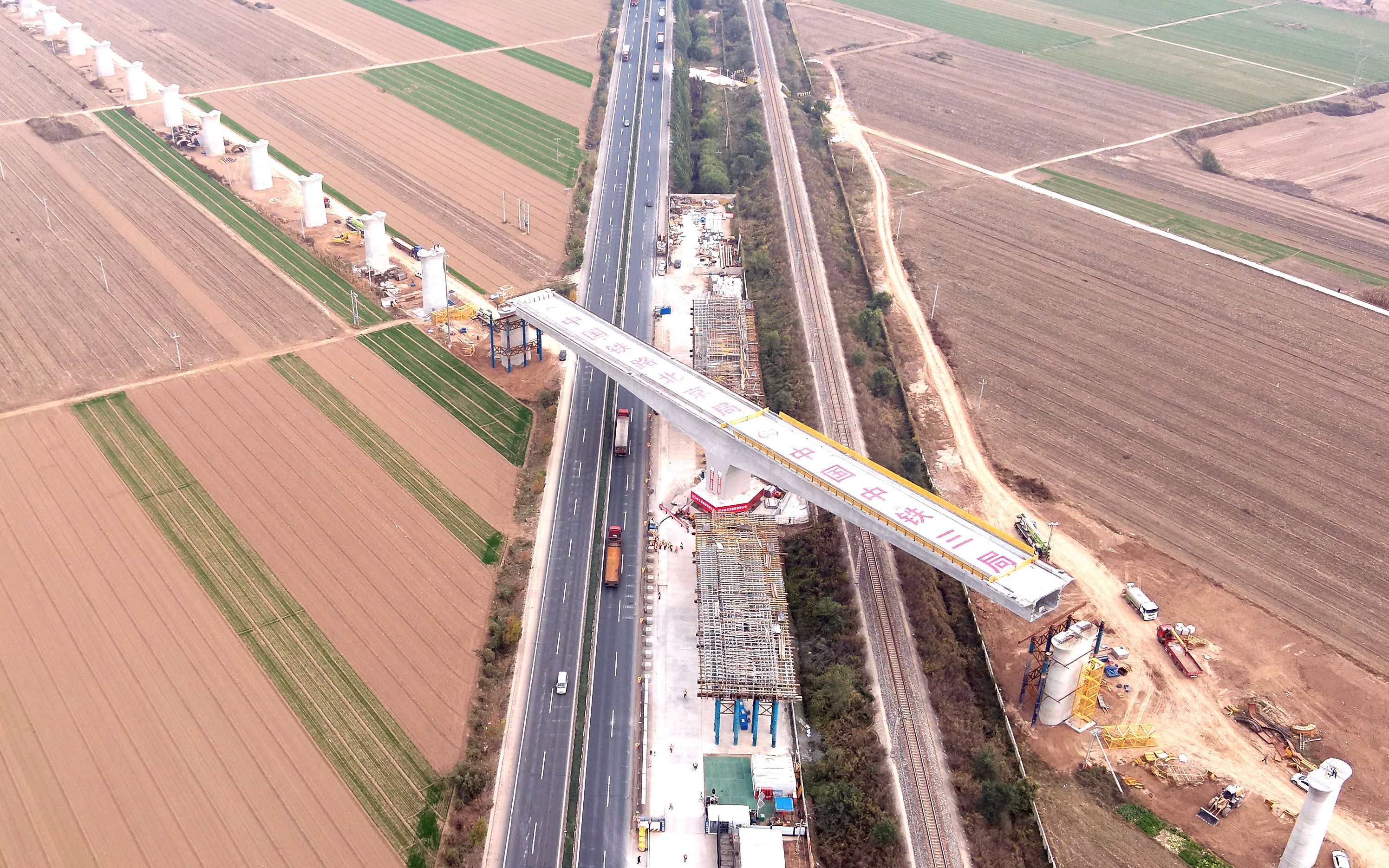 雄商高铁枣强特大桥万吨连续梁成功转体