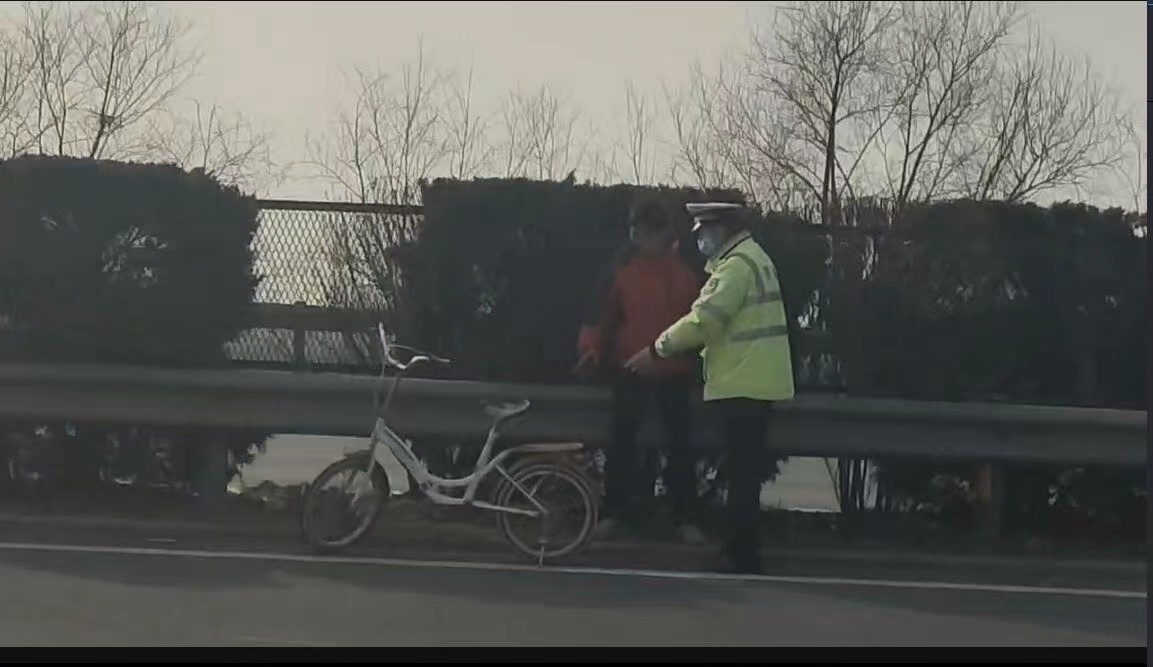 醉汉骑车误上高速 交警闻讯紧急救助