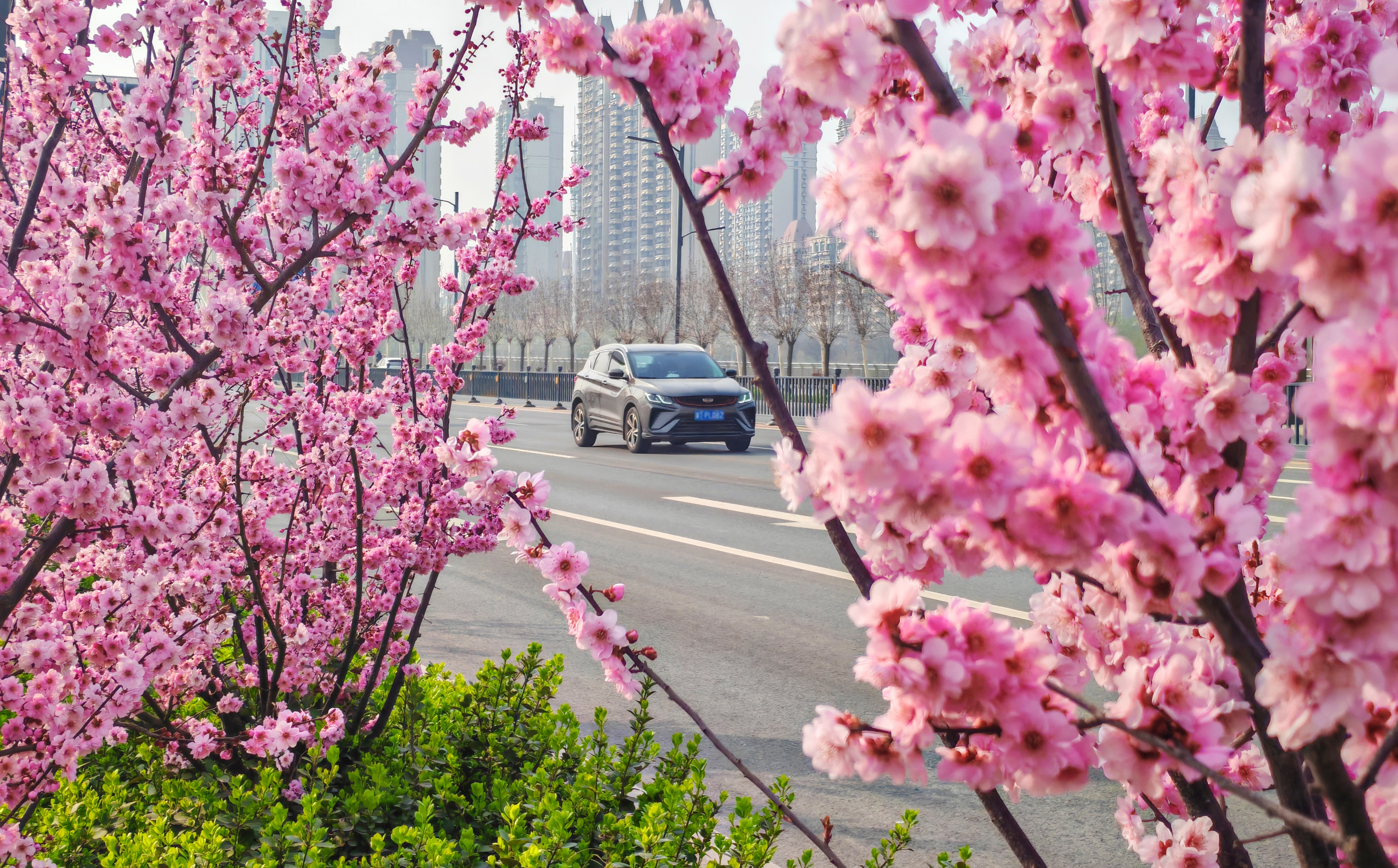 衡水滏阳路:美人梅盛开 繁花似锦