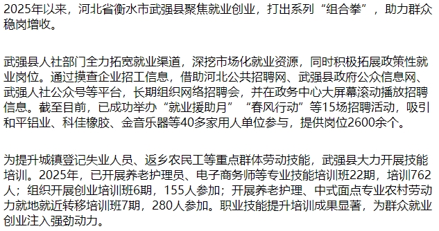 武强:打出“组合拳” 为就业创业注入强劲动力
