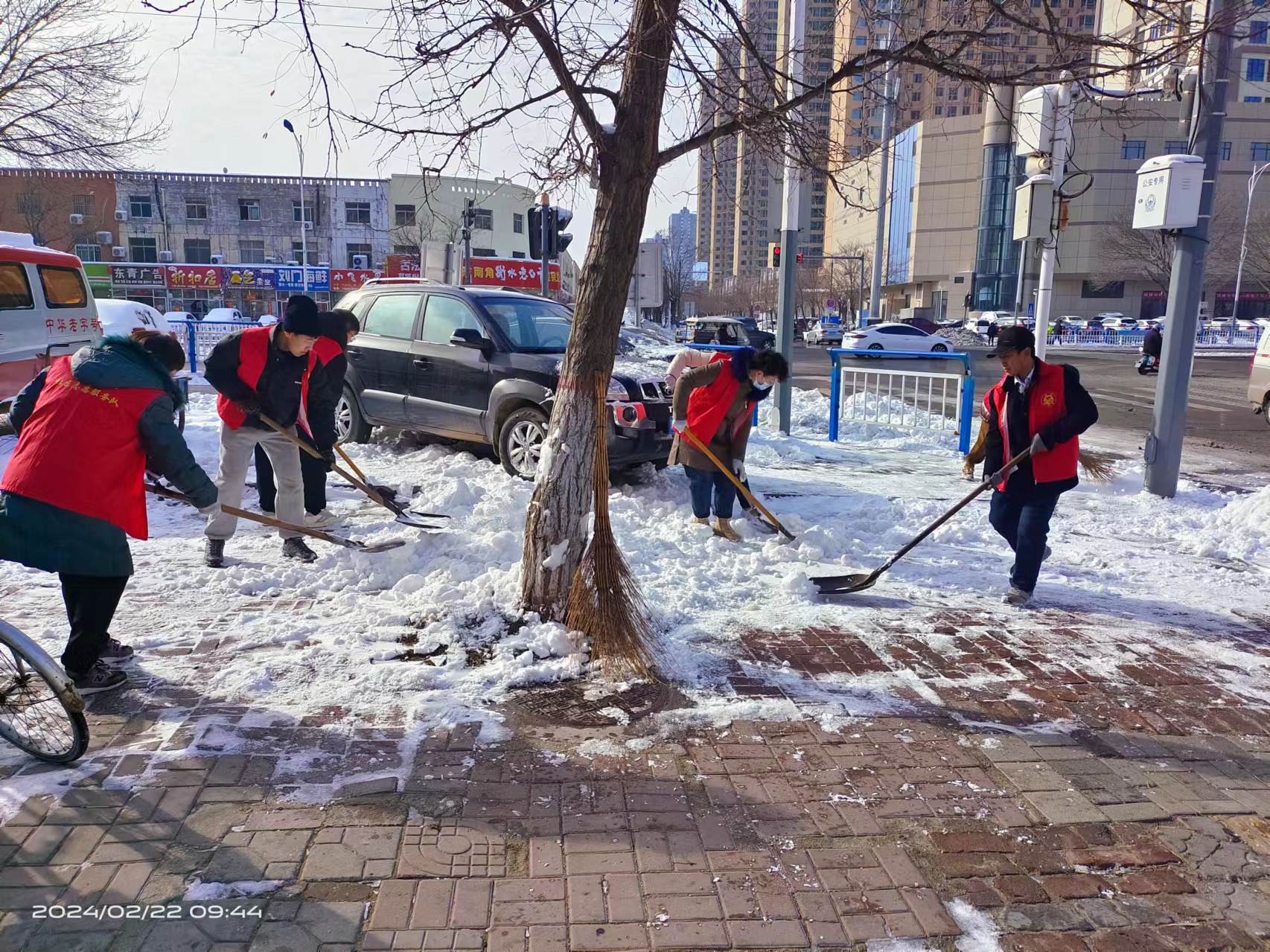 衡水桃城区中华大街街道全员出动扫雪铲冰保出行