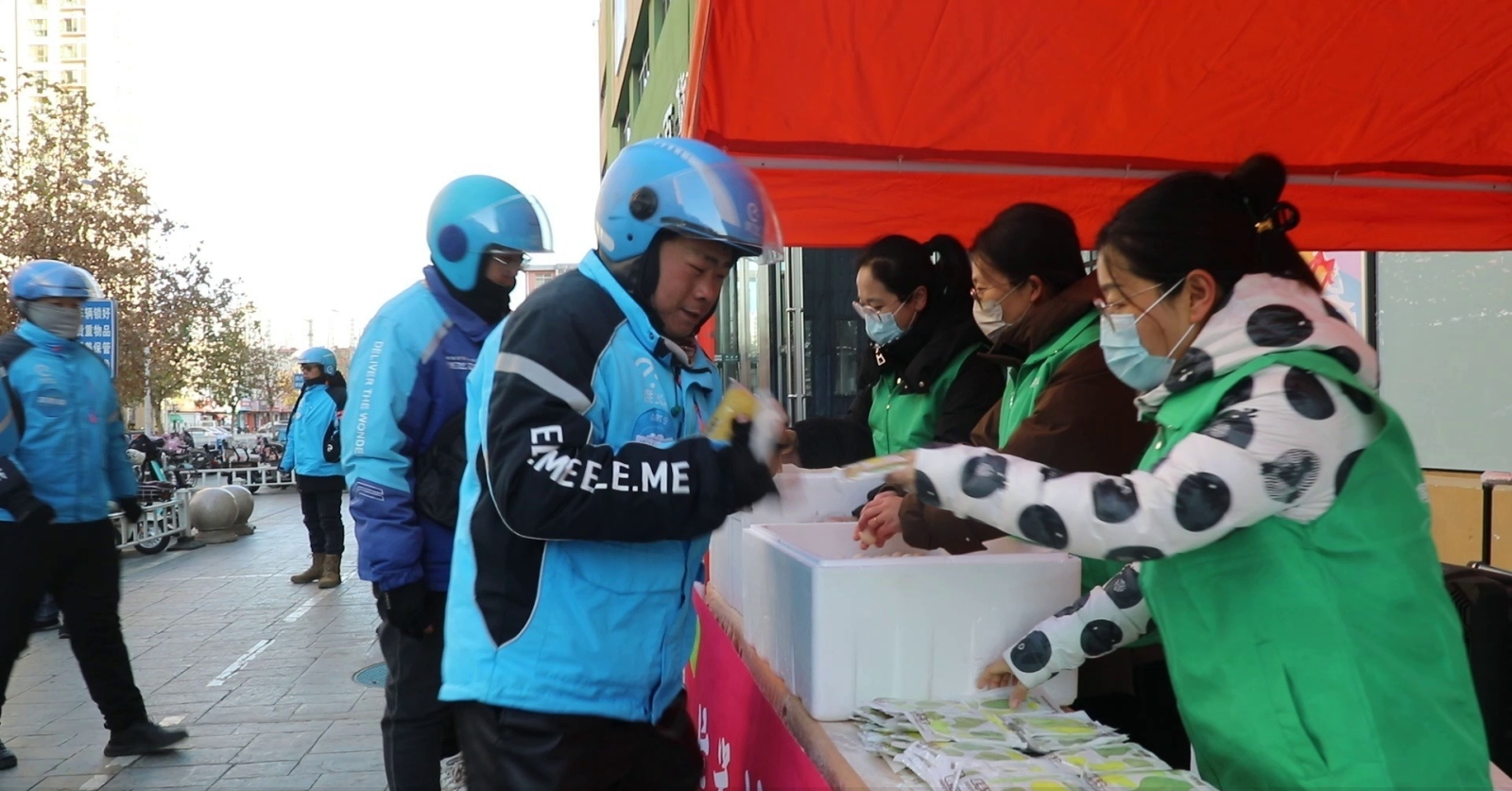 衡水桃城区:爱心企业为外卖小哥送早餐