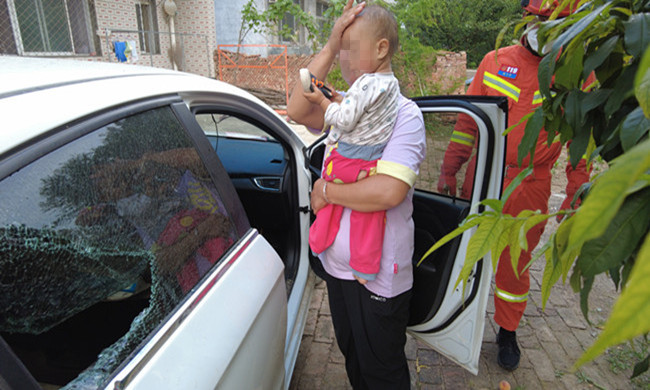 衡水景县:幼童被困车内 消防紧急救援