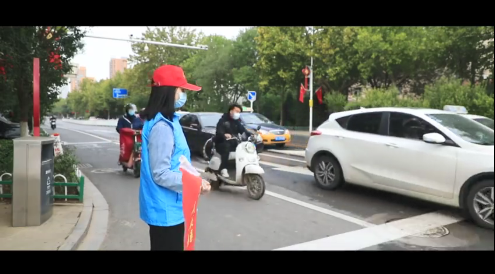 衡水冀州区:千面国旗庆国庆 街头一片“中国红”